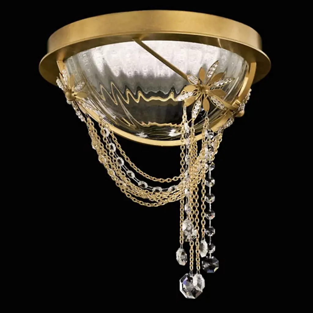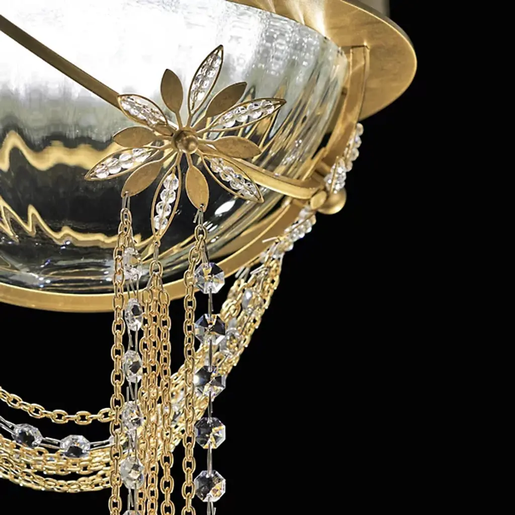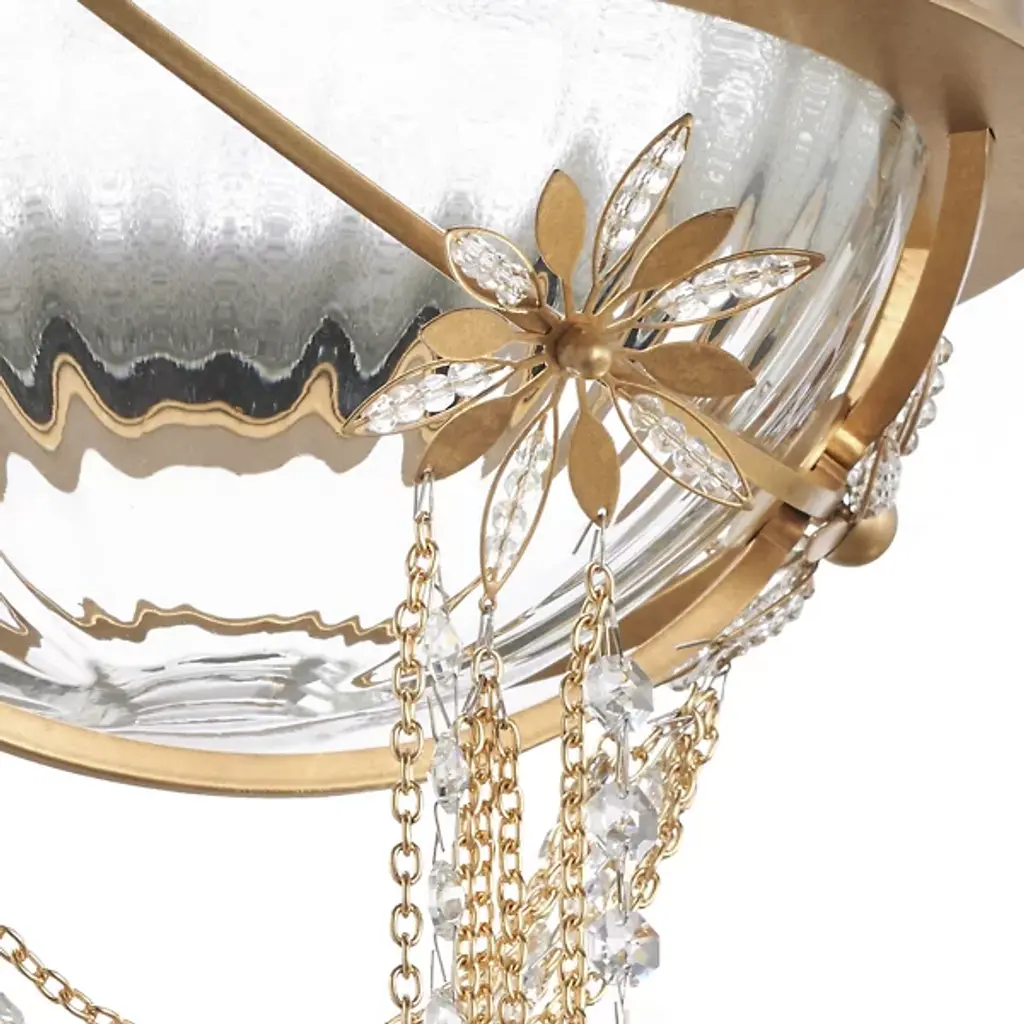 The Revere LED Flushmount from Schonbek Forever displays timeless style, blending intricate craftsmanship with modern LED technology. The mouth-blown glass orb is adorned with braided mesh chains and gold accents, capturing the light and refracting it through thousands of Radiance crystal dust particles. Sparkling strands of high-quality, octagon-cut European Radiance crystals cascade along the outer edges, adding heirloom-worthy brilliance. Constructed of steel and aluminum, this luminaire features a color temperature selectable switch, allowing you to tailor the ambiance to your preference.