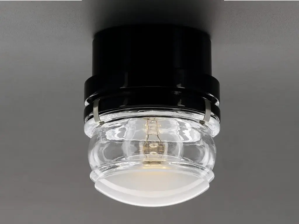 A concentric ring reflector and striking materiality elevate the simple disc silhouette of Richwood. As light washes over the ripples of the Brass Plated Glass interior, it spreads outwards with a dramatic effect, not unlike the cosmic phenomenon for which it is named. Whether mounted on the wall or ceiling, the contrast between the Soft Black exterior of the shade and the golden interior leaves a lasting impression.