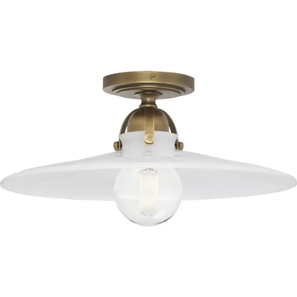 Vintage Industrial Glass Shade FlushmountBulb Type: ANumber of Bulbs:1Bulbs Included: NUL Listed: YesBulb Wattage: 100Hardwire or Plug: Hardwire