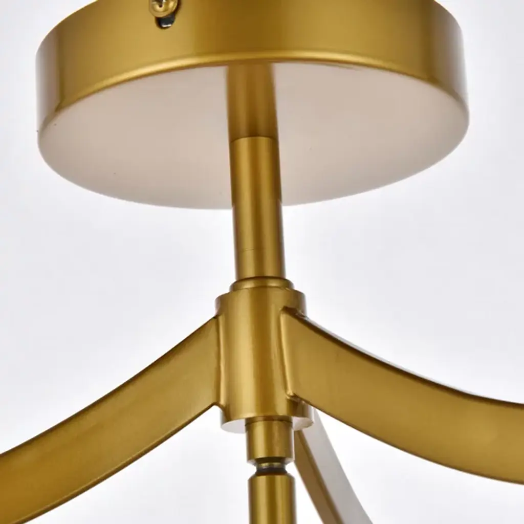 Brighten your space with the Rigsby Flushmount from Alder & Ore, expertly crafted from metal and damp-listed for flexible installation options. This transitional fixture elegantly descends along a short stem hanging from a circular canopy, presenting a sophisticated silhouette. The design features open candelabra lamping, highlighted by sweeping, bracket-style structural elements that tastefully frame the light source, ensuring an open flow of illumination accented by shadowy elements. The sturdy metal construction and considerate design details add transitional allure with a measured modern appeal.