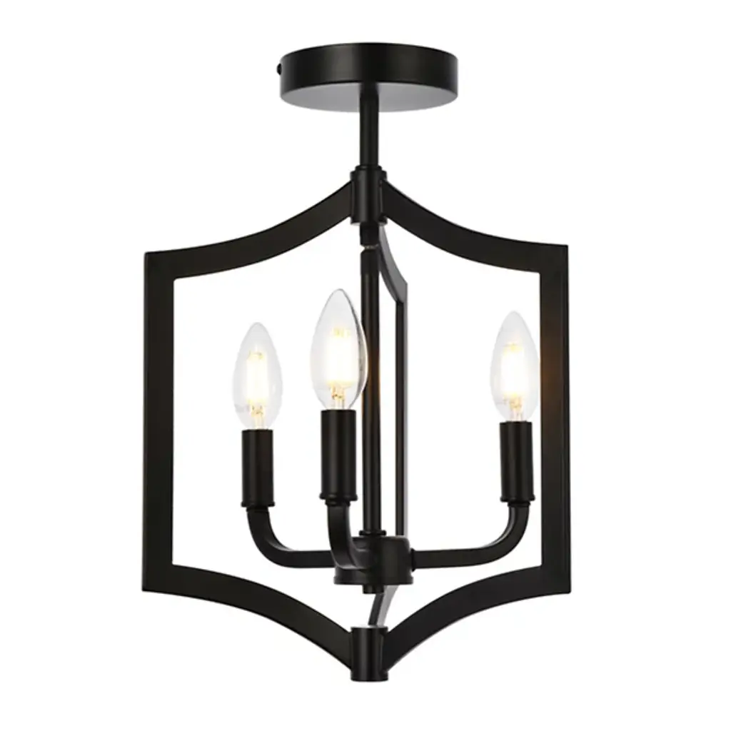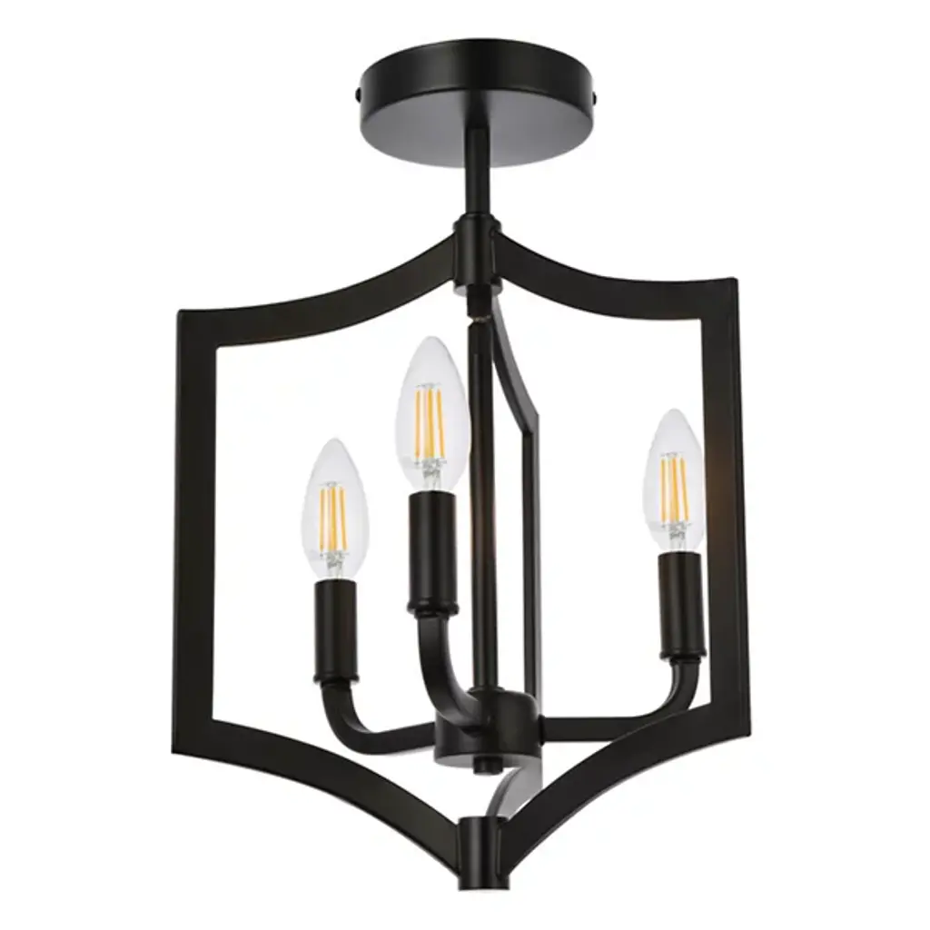 Brighten your space with the Rigsby Flushmount from Alder & Ore, expertly crafted from metal and damp-listed for flexible installation options. This transitional fixture elegantly descends along a short stem hanging from a circular canopy, presenting a sophisticated silhouette. The design features open candelabra lamping, highlighted by sweeping, bracket-style structural elements that tastefully frame the light source, ensuring an open flow of illumination accented by shadowy elements. The sturdy metal construction and considerate design details add transitional allure with a measured modern appeal.