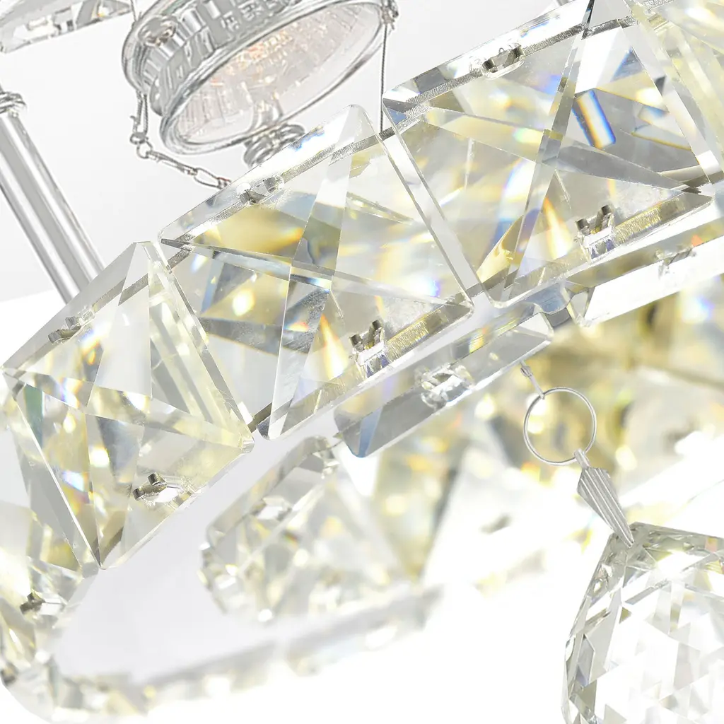 Easily bring glamour to your interiors with the Ring LED Flush Mount. This dazzling close-to-ceiling fixture features a chrome-finished ceiling plate supporting a crystal-embellished LED halo. A faceted crystal ball hangs at the center, adding an extra touch of sparkle. This modern glam light delivers a luxurious ambiance, perfect for any room in your home.