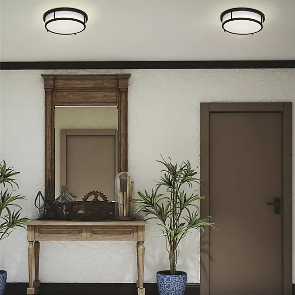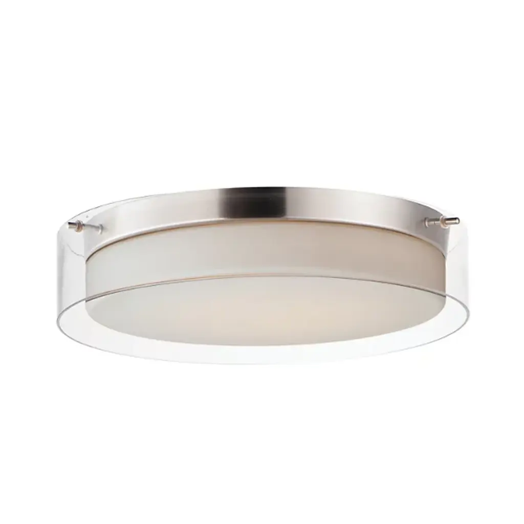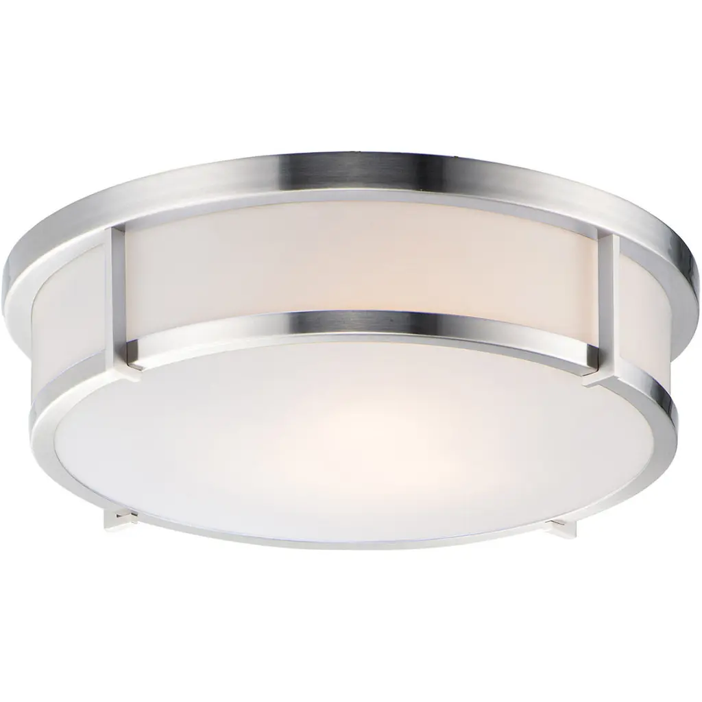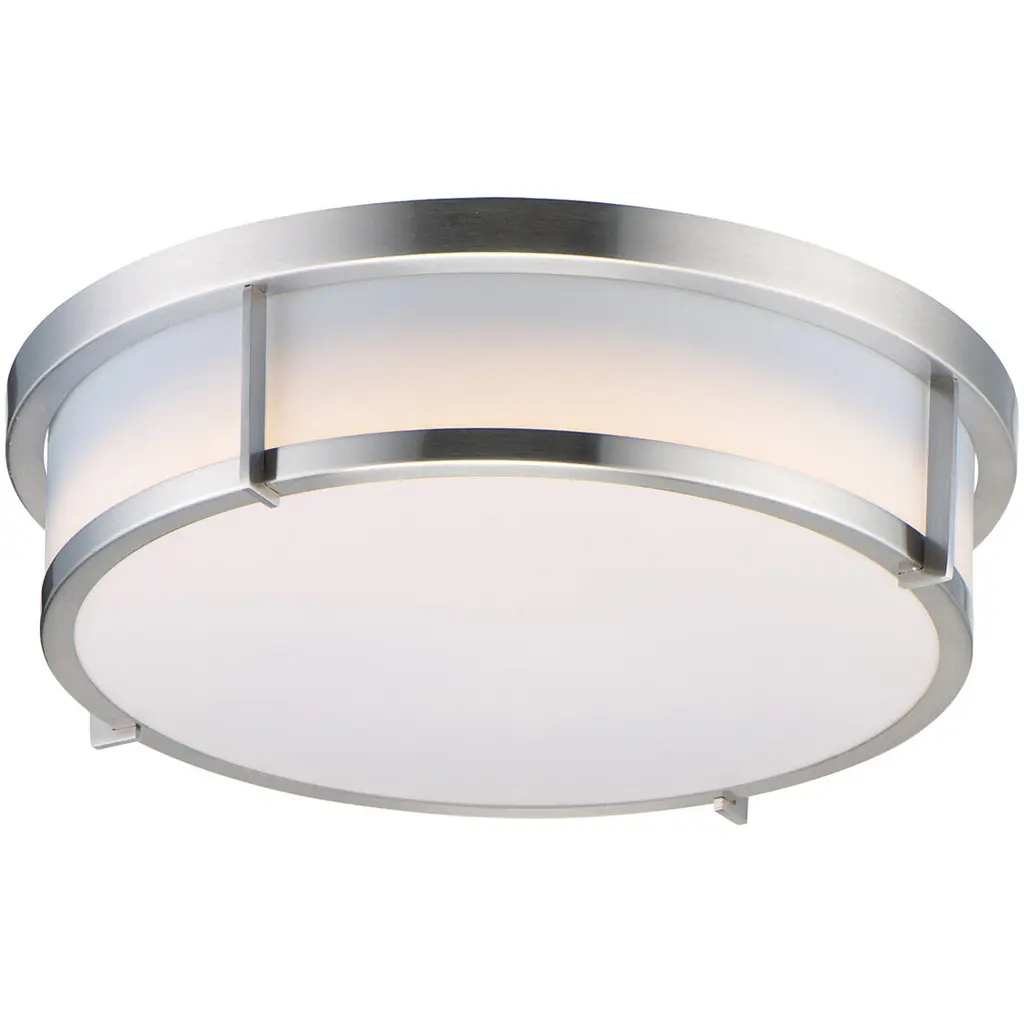 A simple and stately design brings ample illumination where needed most. The Rogue Flushmount by Maxim Lighting is an adaptable light fixture suitable for a wide range of interior décor styles. A circular steel frame anchors the piece to the wall, while a series of short bars drop to cradle a rounded polycarbonate shade. The clean lines of its steel banding contrast sharply against the matte diffuser, while its lamping blankets the room with evenly dispersed light.
