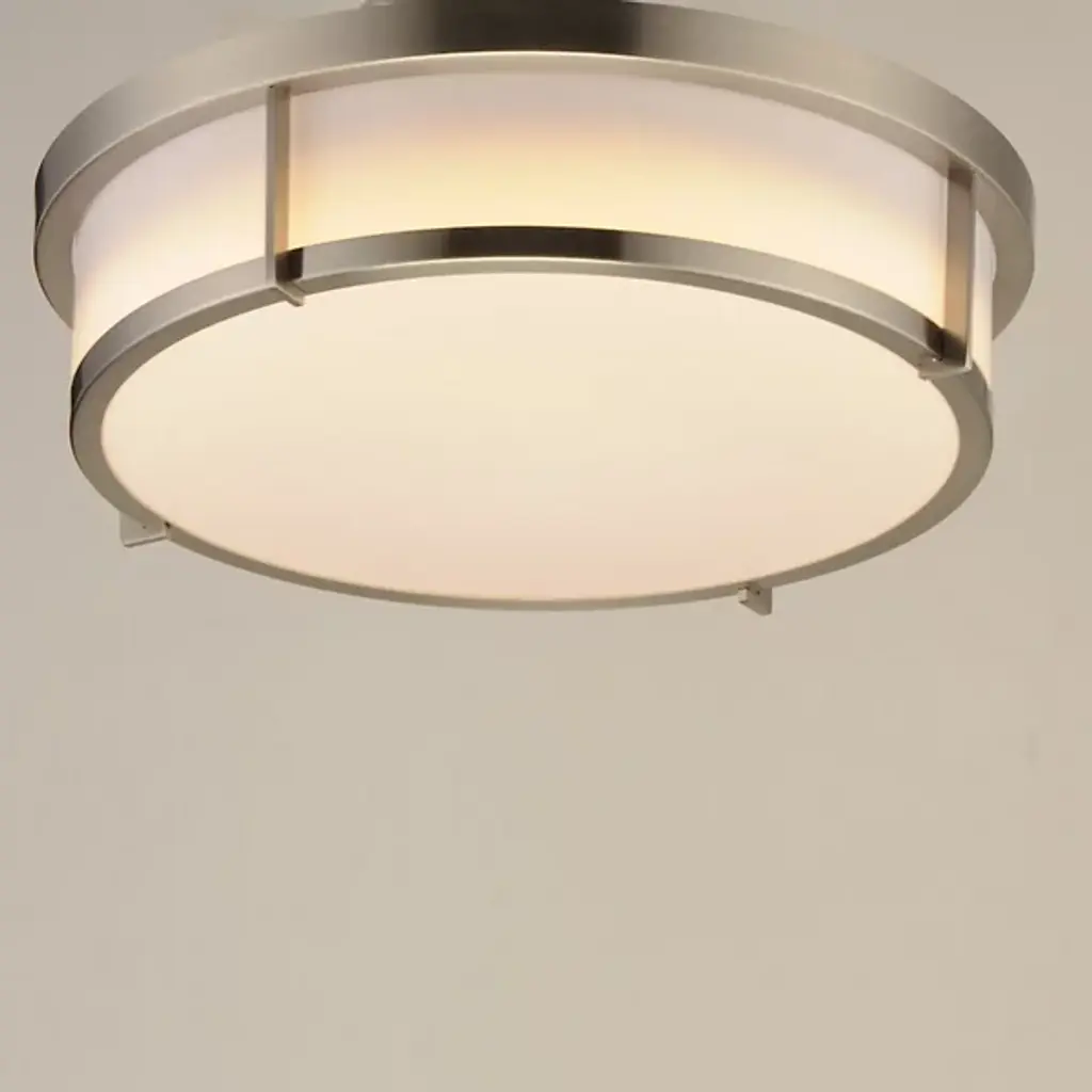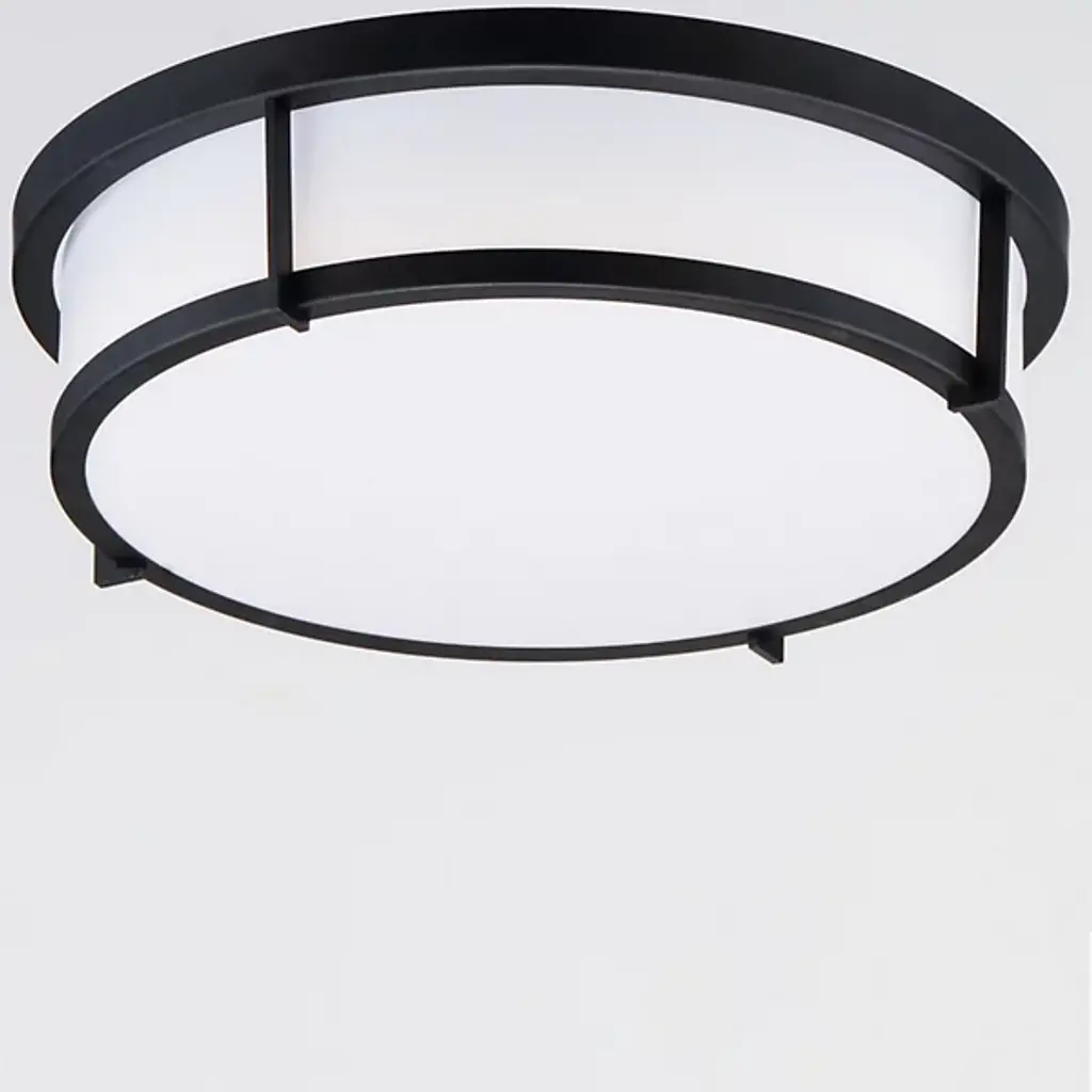 A simple and stately design brings ample illumination where needed most. The Rogue Flushmount by Maxim Lighting is an adaptable light fixture suitable for a wide range of interior décor styles. A circular steel frame anchors the piece to the wall, while a series of short bars drop to cradle a rounded polycarbonate shade. The clean lines of its steel banding contrast sharply against the matte diffuser, while its lamping blankets the room with evenly dispersed light.
