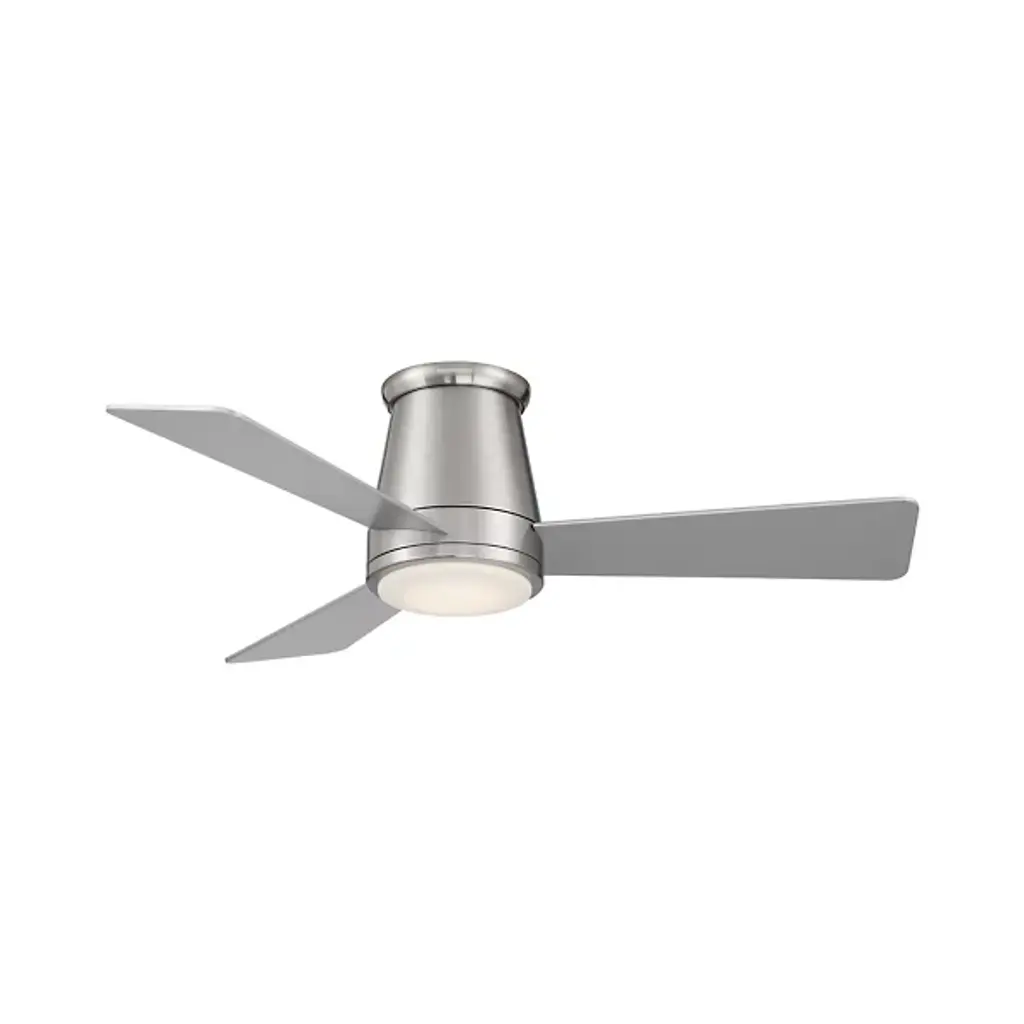 The Roto Flushmount LED Ceiling Fan from Minka Aire Fans whips up a smooth breeze and clean light in a tight package. Rooms short and tall make use of this design’s low-sitting construction. Its elegant geometric housing packs a powerful AC motor that drives the blades forward and backward at 3 separate speeds. One can control the fan’s functionality with a convenient handheld remote. At the center of the air-catching and dispersing blade lies a diffused LED light source that turns on to offer a clean, downglow.