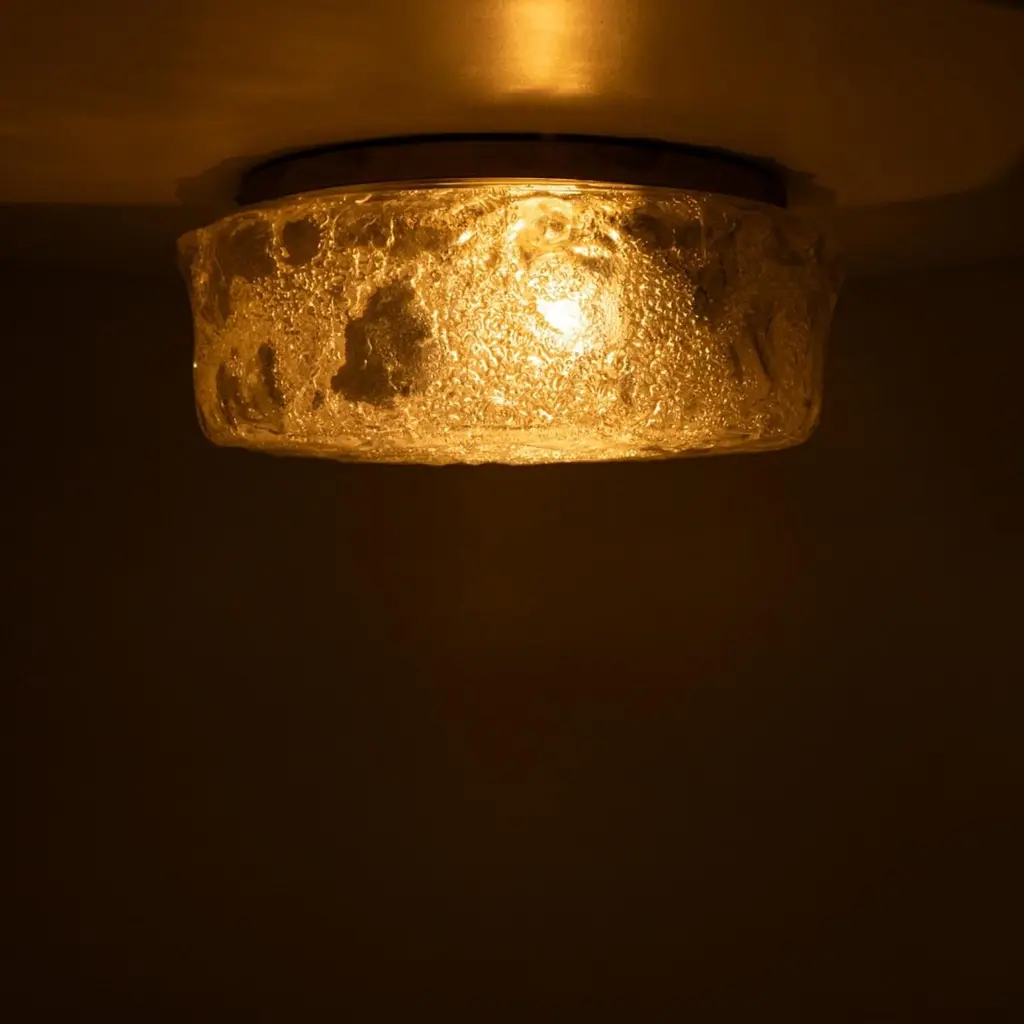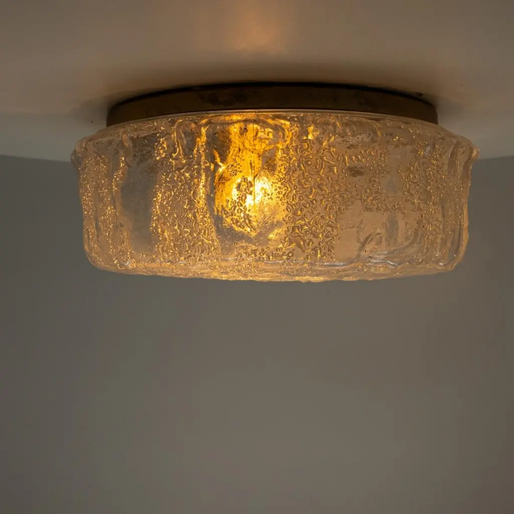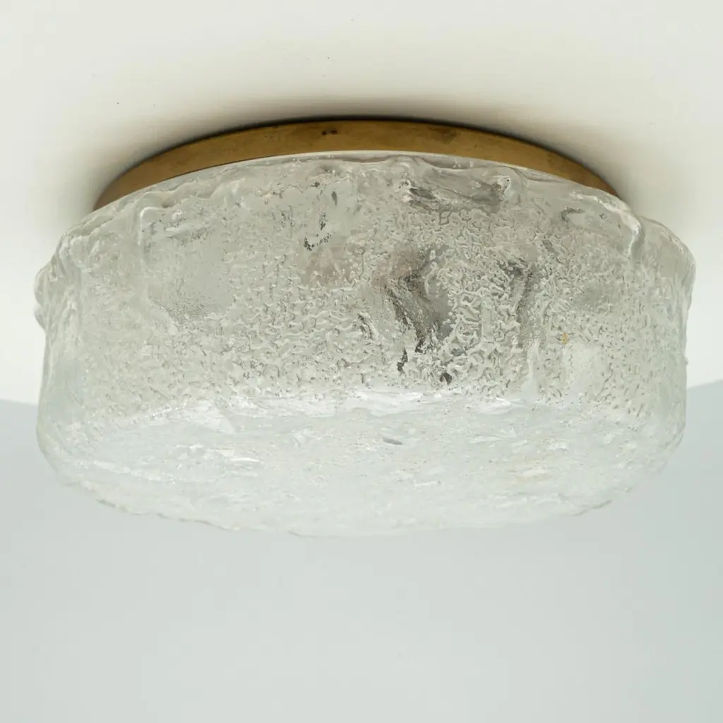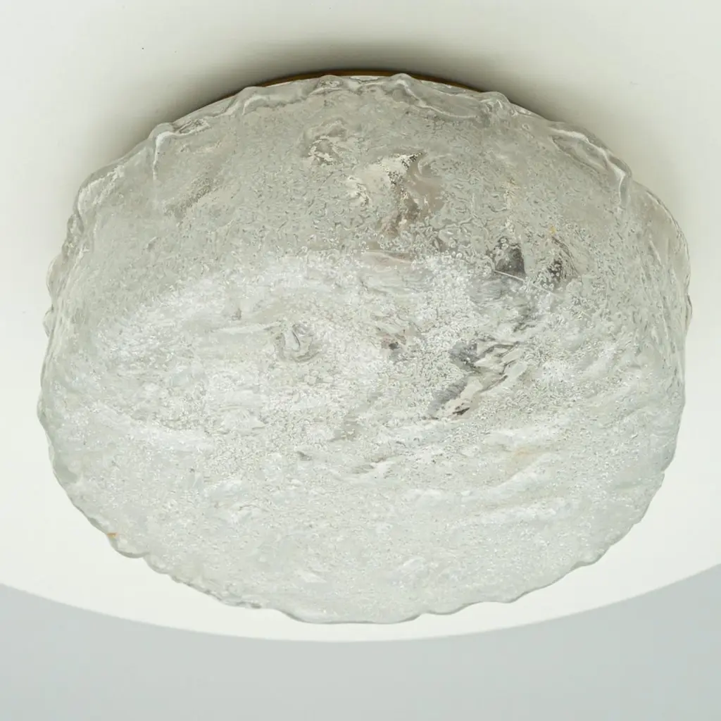 Round Glass Flush Mounts by Helena Tynell for Glashütte Limburg, manufactured in Germany in 1960. The round glass is mounted on a metal back plate.Please note the price is for one piece.Dimensions:Diameter: 19,7″ (27 cm)Depth: 5,5″ (12 cm)Cleaned and well-wired, in full working order and ready to use. The frame is in very good condition. The fixture requires 1 E27 standard bulb. Also LED compatible. maximum 40 watts.