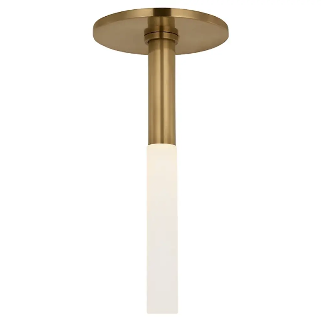 The Rousseau Monopoint LED Flushmount from Visual Comfort Signature illuminates your space with a contemporary marvel designed to elevate any room. Crafted from brass with a sleek glass shade, this fixture exudes modern sophistication. Kelly Wearstler's meticulous design blends clean lines with luxurious materials, creating a statement piece for your ceiling. Perfect for adding style and ambiance to any space, this flushmount is a testament to Kelly Wearstler's iconic aesthetic and impeccable craftsmanship.