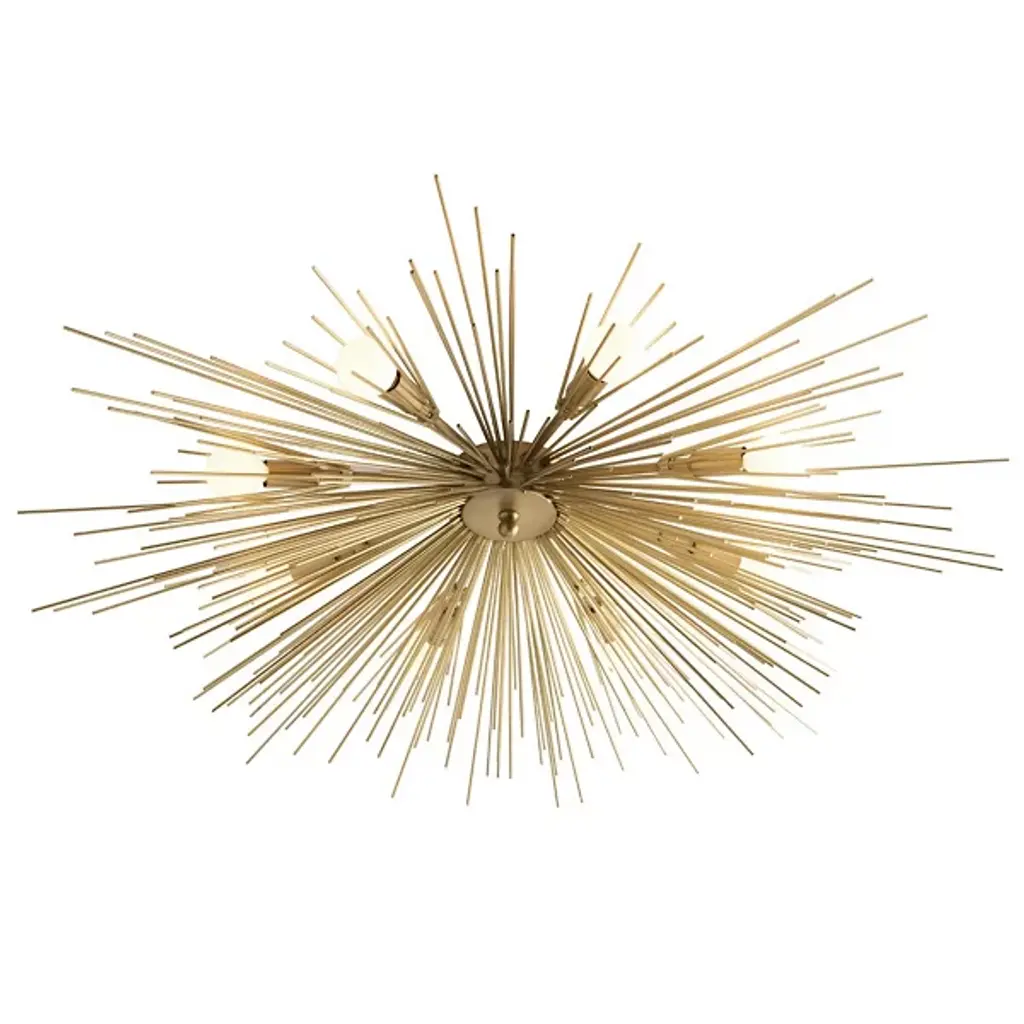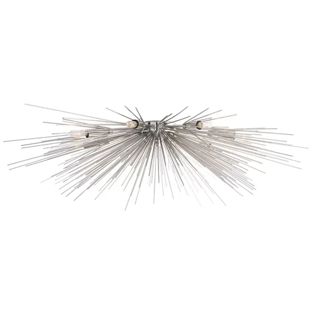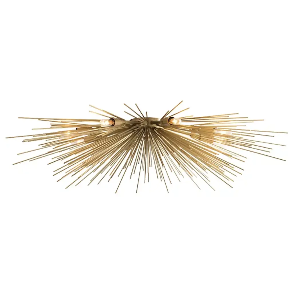 Using the Zanadoo as an inspiration, the Roxanne Flushmount is composed of the same shape, using repeated spokes projecting outwards, creating a very dynamic lighting fixture. This arrangement of thin rods also creates an intriguing cast shadow on surrounding areas when lit. Held flush to the ceiling or wall, this fixture appears to extrude directly from the surface, much like a cave stalactite.