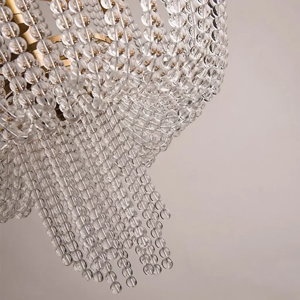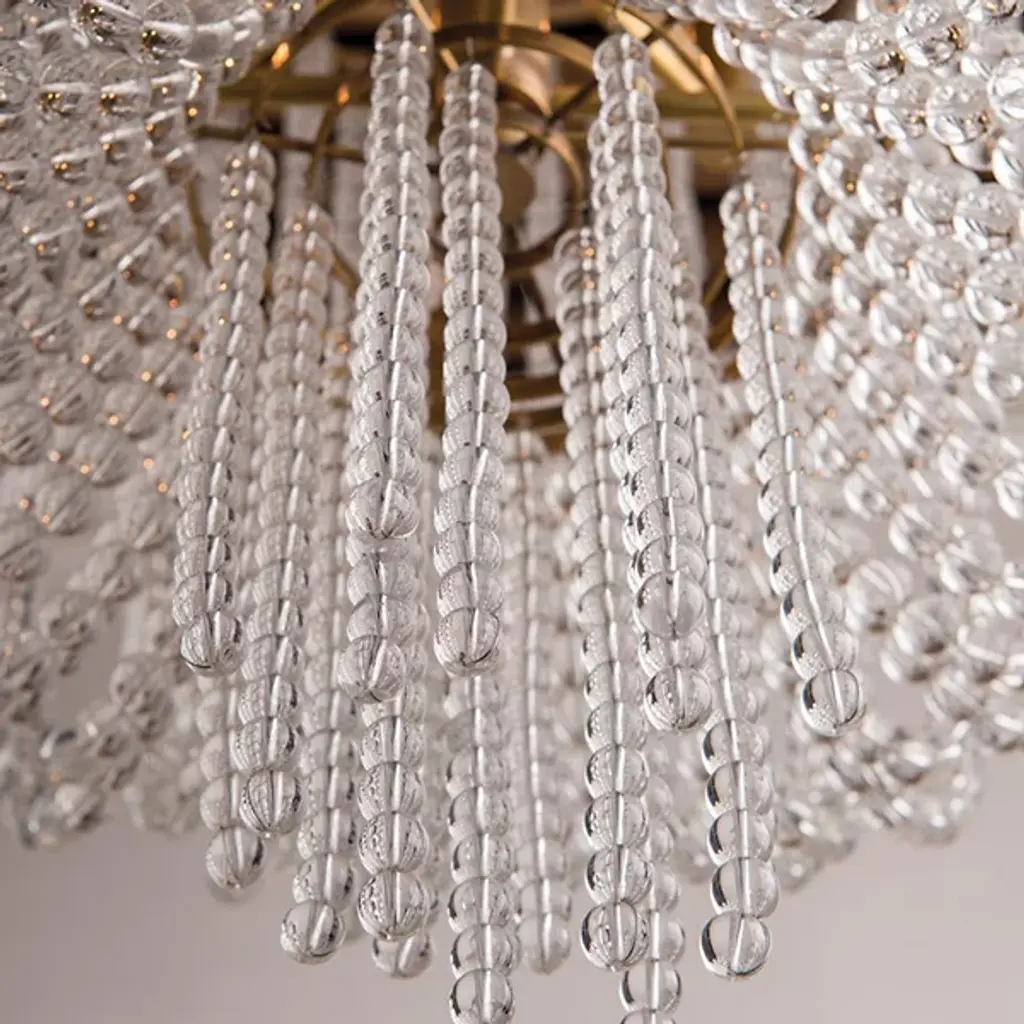 Give your home the classic elegance of a Jazz Age ballroom with the Royalton Flushmount by Hudson Valley Lighting. Its body is made of strung crystal beads that hang side by side like a series of pearl necklaces. The porous surface allows hidden light sources to play through the crystal, creating a beautiful shimmering effect.