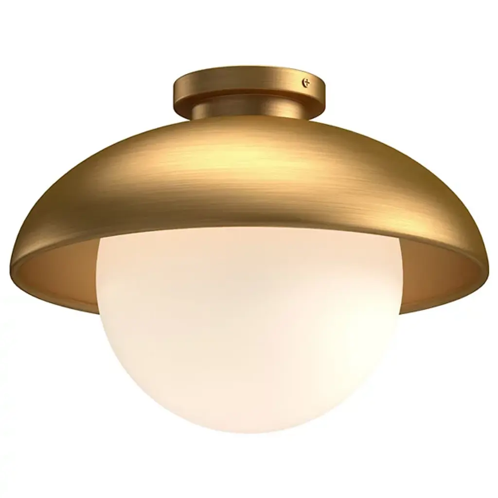 The Rubio Flushmount from Alora Mood dots the ceilings with lovely curves and warm, nourishing light. This is a piece suited for the modern or contemporary space. Its clean silhouette enhances the tidy feeling of the room. It rests on the ceiling with a low-profile canopy that looks natural in the short ceiling setting. It pairs a dome metal shade and a globe glass shade to both push the light downward and soften it up. This pairing of shades also creates a beautiful contrast in colors that satisfies when the piece is off or on. The design’s warm, billowing light makes its way into the room as a filling, cozy glow.