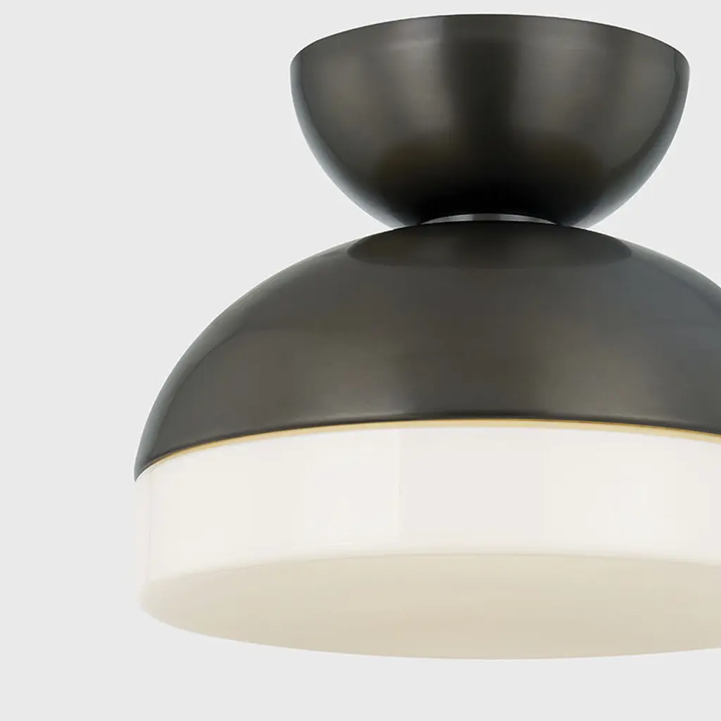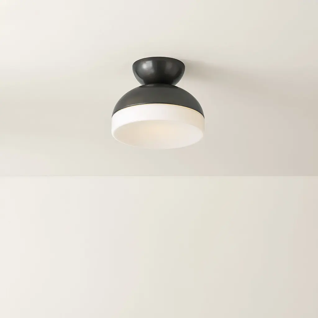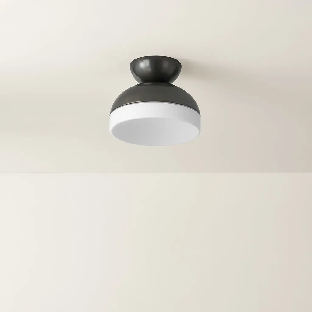 Playing with shape and scale, the stylish Rue features sleek inverted dome shades. The softly concaved glass combined with the clean geometry of the metalwork creates a fresh, contemporary appearance that enhances any space. Available as a flush mount, Rue sets the scene with soft downlighting.