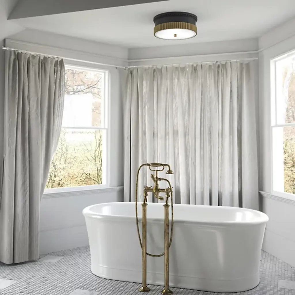 The Rue Flushmount by Alora Mood mixes Parisian details with New York City style. The Rue Flushmount features a banquet of stunning textures and shapes to create a feast for the eyes. With a ribbed metal framework, an Opal glass shade, and skyscraper-inspired details, this ceiling-mounted light fixture is a statement piece for your living space.