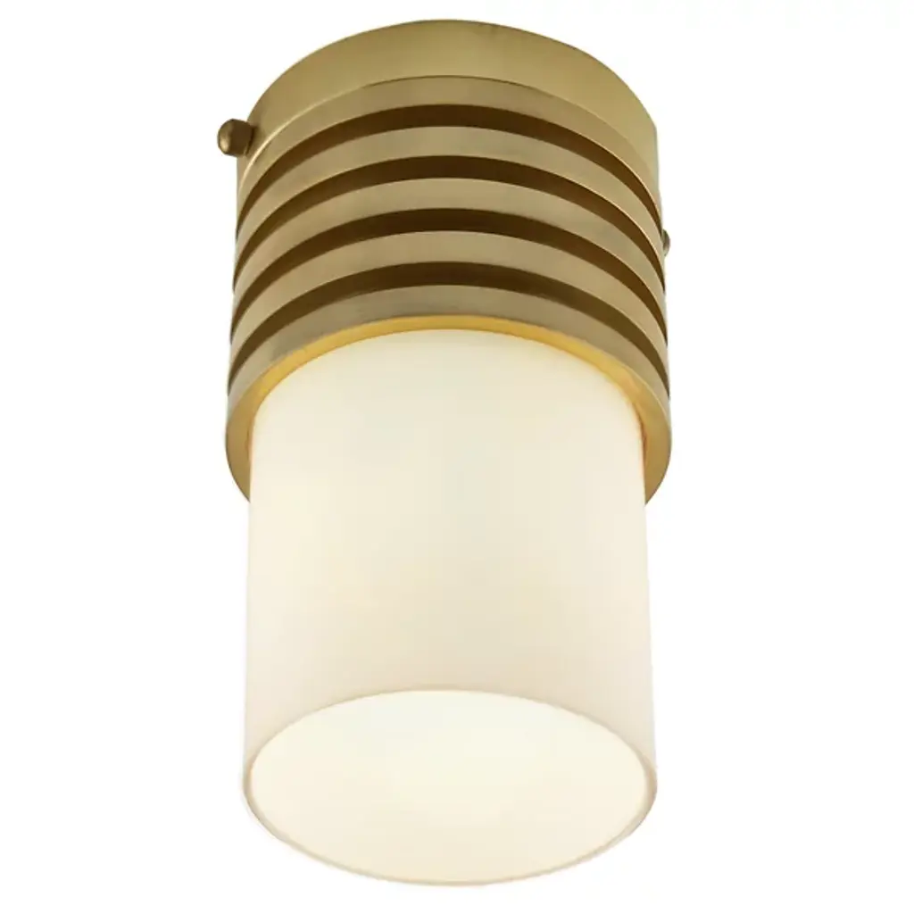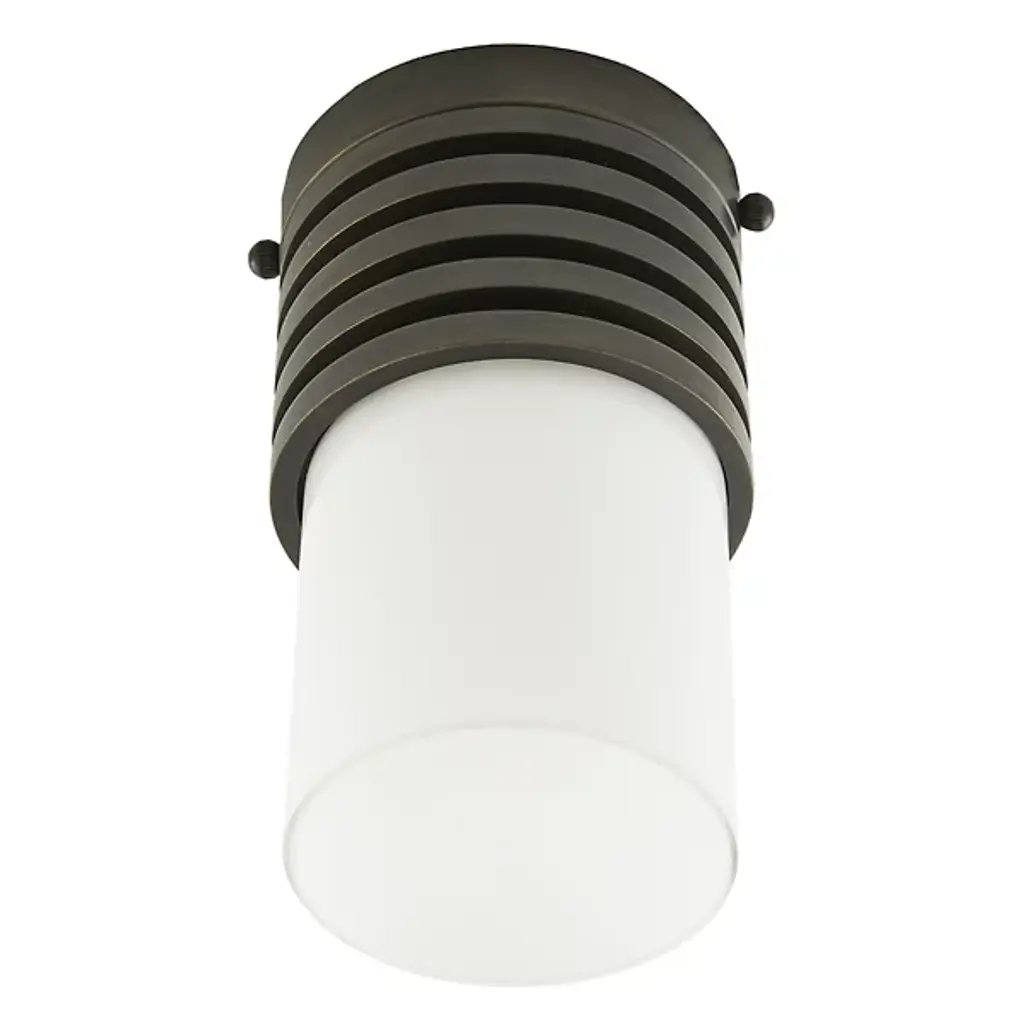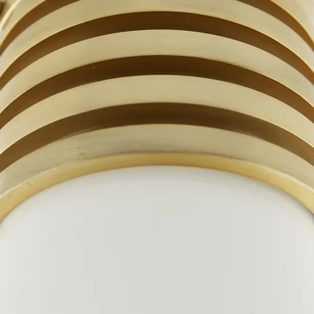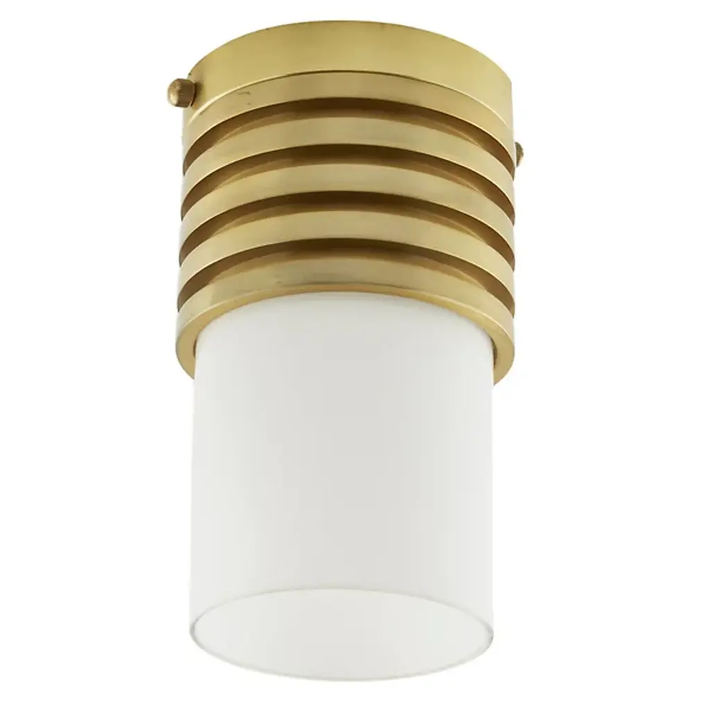 The Rune Flushmount from Arteriors enhances the calm of the space with a series of curves glazed in warm light. This modern piece harms in its refined, antique style. It features low-profile mounting hardware that looks fitting over short hallways or intimate rooms. The piece entrances the eyes with a layered steel structure. Each ring of the structure is artisan-crafted using a quick-turning lathe. The finish of this structure stands out against the milky color of the opal glass shade. Once on, the shade scatters a soft, warm glow that lays across the fine metal as beautiful highlights.