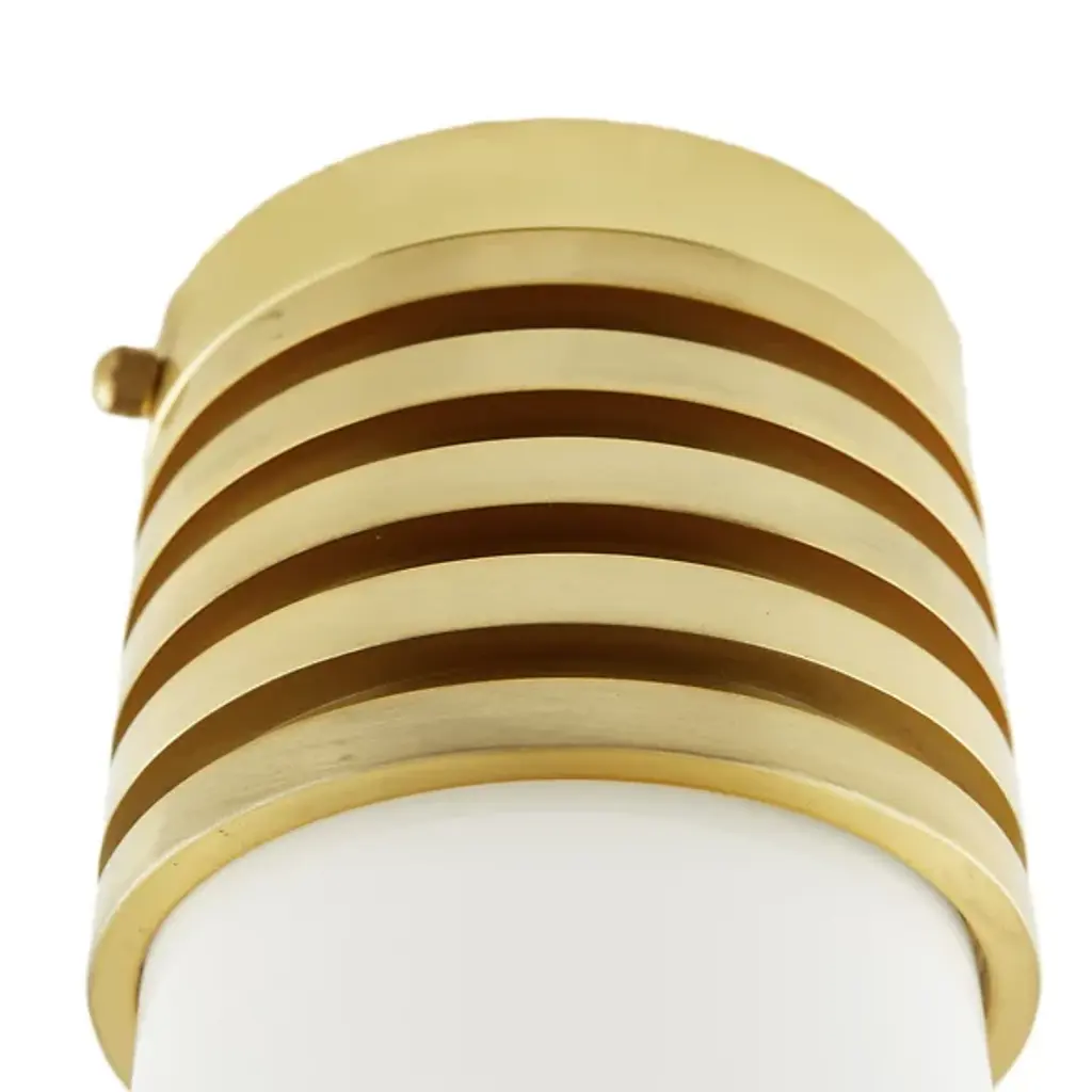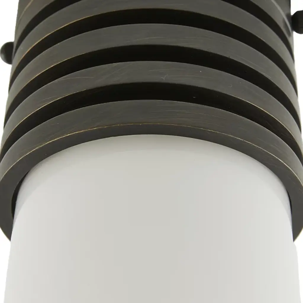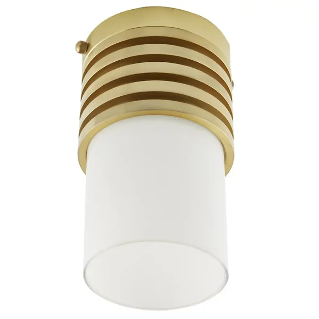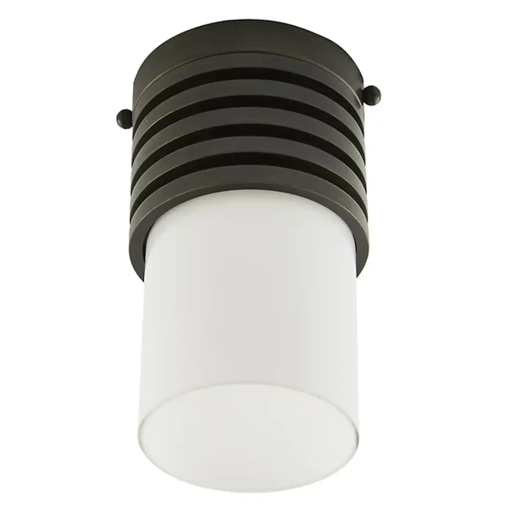 The Rune Flushmount from Arteriors enhances the calm of the space with a series of curves glazed in warm light. This modern piece harms in its refined, antique style. It features low-profile mounting hardware that looks fitting over short hallways or intimate rooms. The piece entrances the eyes with a layered steel structure. Each ring of the structure is artisan-crafted using a quick-turning lathe. The finish of this structure stands out against the milky color of the opal glass shade. Once on, the shade scatters a soft, warm glow that lays across the fine metal as beautiful highlights.