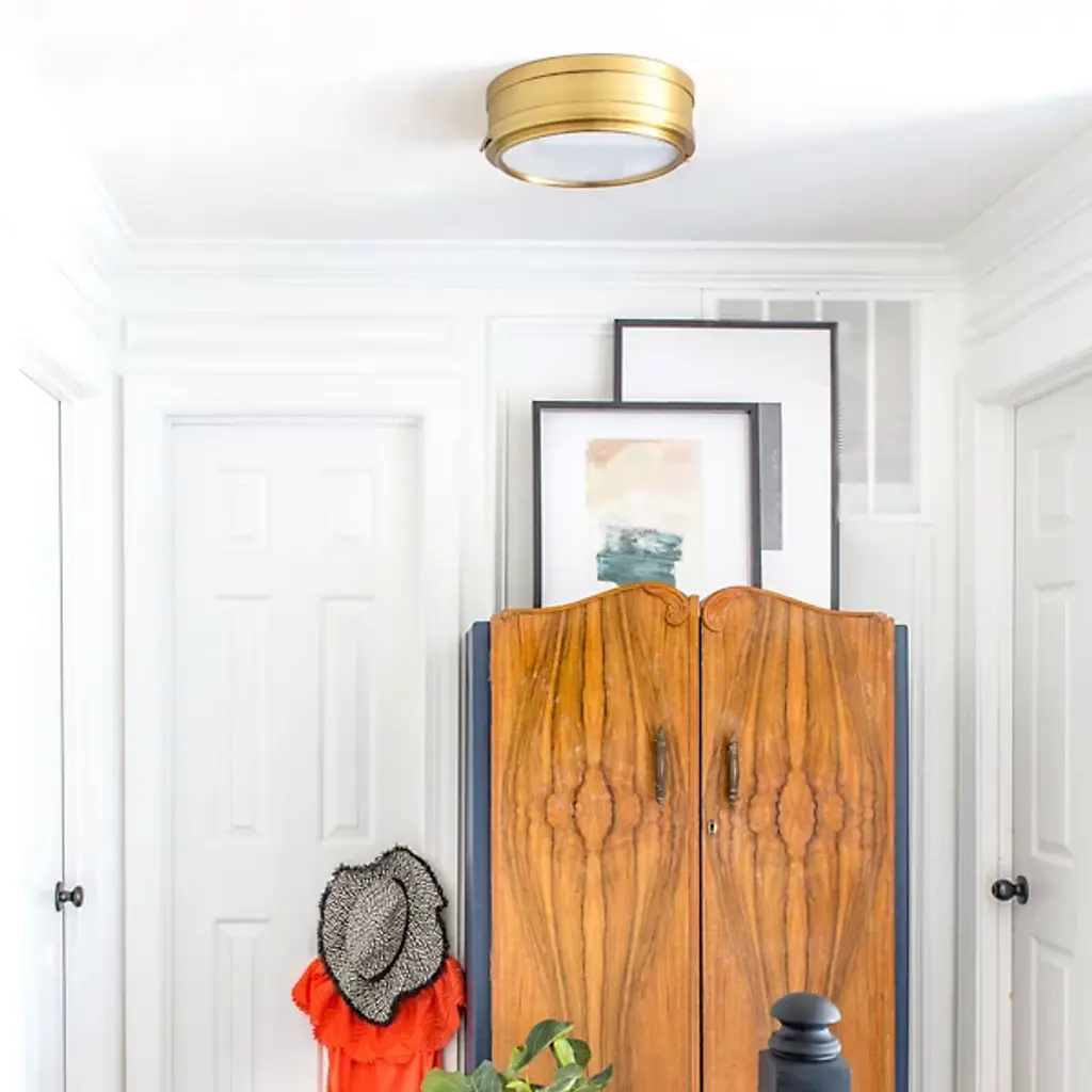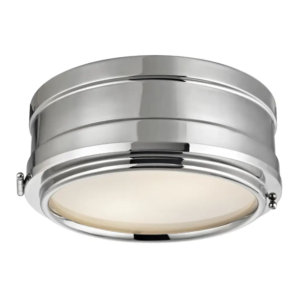 Handsome and genuine, the Hudson Valley Rye Flushmount features clean lines and simplicity with a little added detail. Simplicity guides the piece, yet a faux hinge and tiny ball across from the hinge adds just the right amount of decorative element. The front can lift off when the small ball is unscrewed.