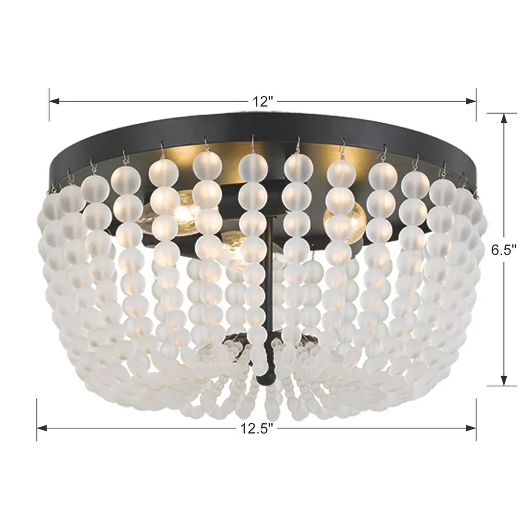 Hundreds of hand-cut frosted crystal beads adorn this opulent flush mount, which is beautifully crafted of steel with a hand-painted matte black finish. Hardwired.