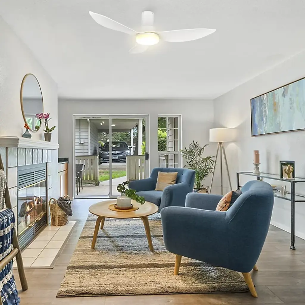 Showing its airiness while off or on. The Ryna LED Smart Ceiling Fan from Carro USA evokes flower petals flowing in the wind with a sculptural, aerodynamic design. The precise engineering on display lends the piece to the contemporary home. It makes the most out of one’s overhead space by sitting on the ceiling with a flush canopy. Its cylindrical housing contains a ten-speed engine that reverses and functions whisper quiet. Triangulating blades use their contoured, leaf-like shapes to grab and send out a refreshing breeze. Speaking of refreshing, an LED light source at the center offers one a cool to warm glow. This glow, as well as the blade’s speed, is adjustable by using the included remote, a smartphone app, or voice-enabled devices.