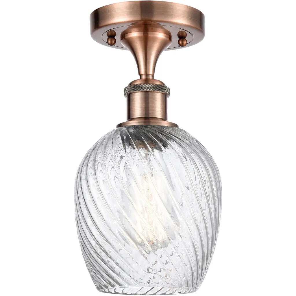 Salina - 3 Light 17" Flush Mount - Antique Brass Finish - Clear Spiral Fluted Glass Shade