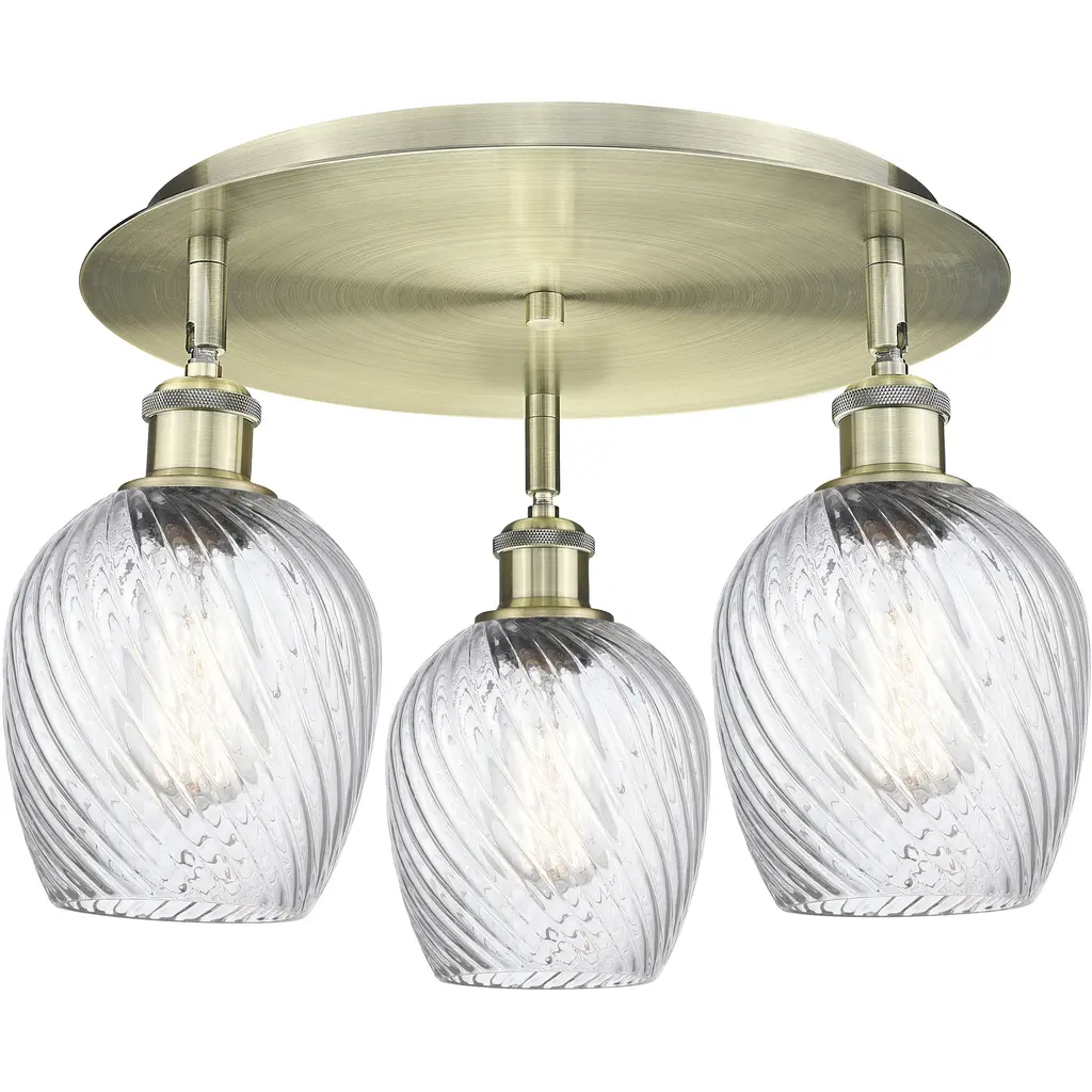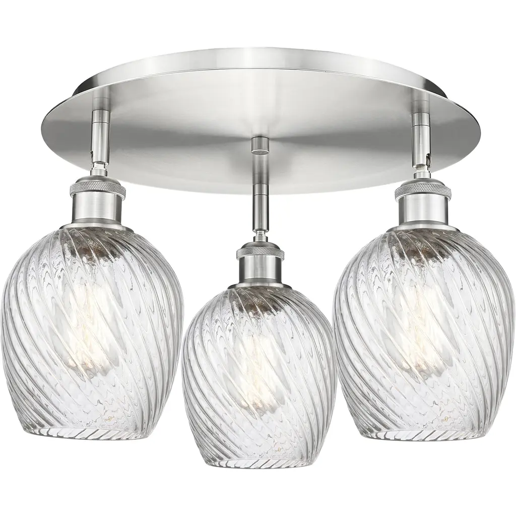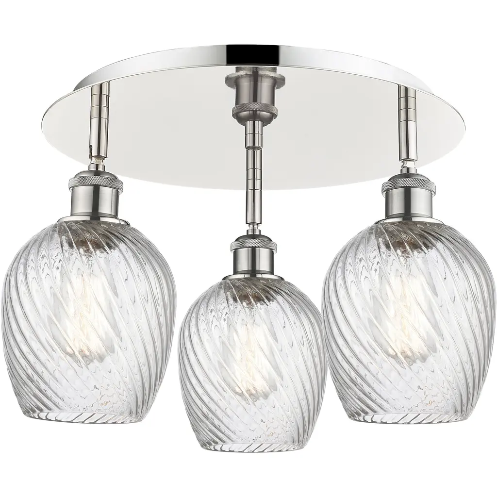 Salina - 3 Light 17" Flush Mount - Polished Chrome Finish - Clear Spiral Fluted Glass Shade