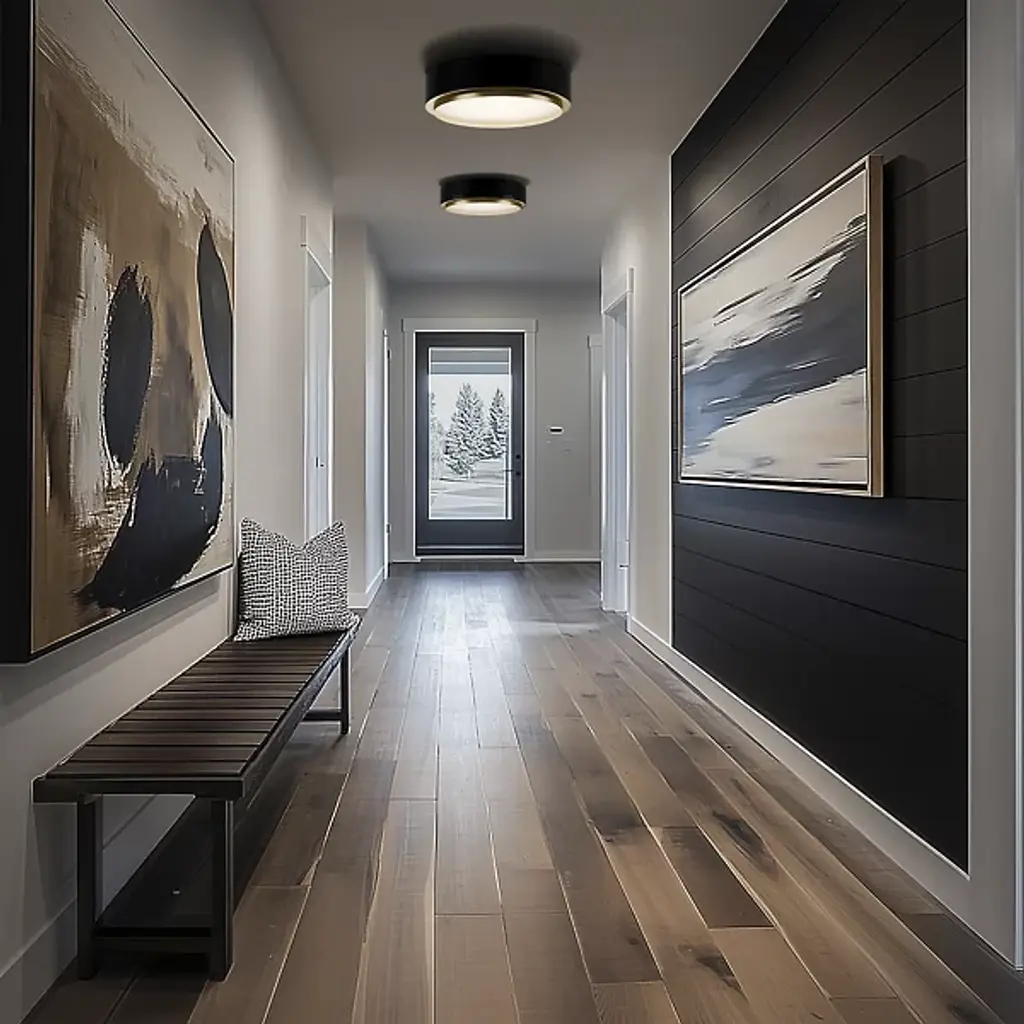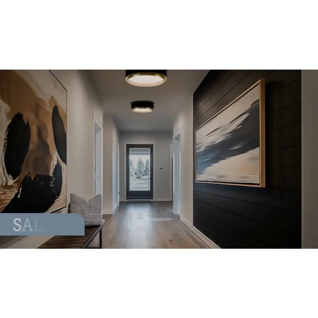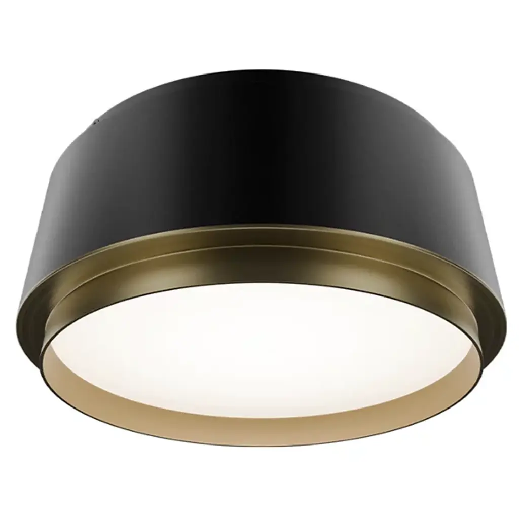 The Salvo LED Flushmount from dweLED features an aged brass ring set within a sleek outer frame, which holds a frosted diffuser to cast a soft, ambient light in whichever room it adorns. It is made from durable aluminum and acrylic, and it allows the user to adjust both the color temperature and the field of illumination, adapting to specific lighting needs. Powered by 120V AC LED technology with no driver required, this fixture offers smooth, continuous dimming when paired with an ELV or TRIAC dimmer for added customization.