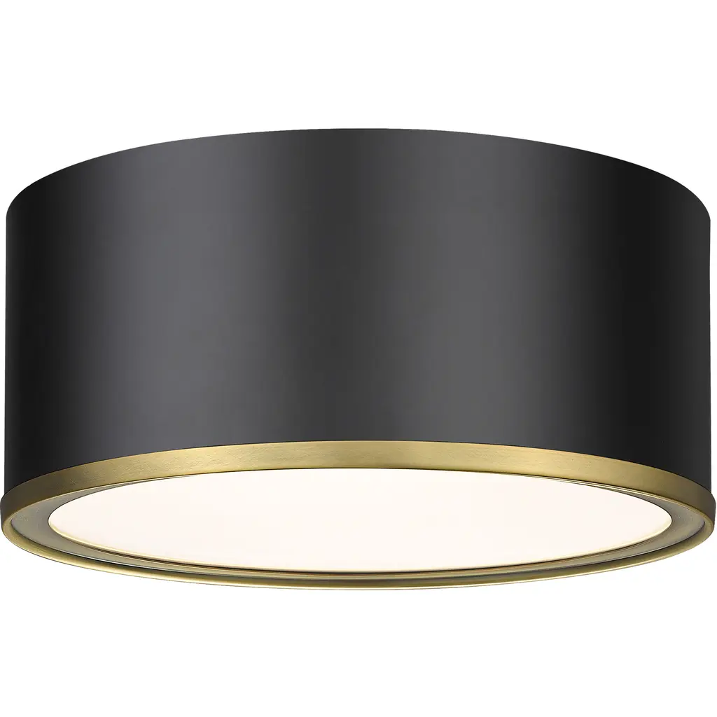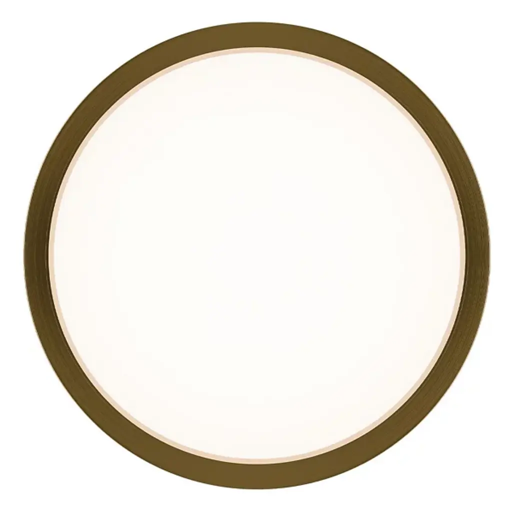 The Salvo LED Flushmount from dweLED features an aged brass ring set within a sleek outer frame, which holds a frosted diffuser to cast a soft, ambient light in whichever room it adorns. It is made from durable aluminum and acrylic, and it allows the user to adjust both the color temperature and the field of illumination, adapting to specific lighting needs. Powered by 120V AC LED technology with no driver required, this fixture offers smooth, continuous dimming when paired with an ELV or TRIAC dimmer for added customization.