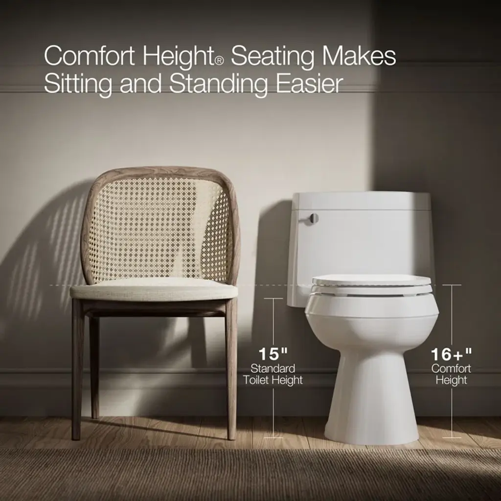 The one-piece design of this Santa Rosa toilet adds a contemporary look to your powder room. Perfect for smaller bathrooms and powder rooms where space is at a premium, the compact elongated shape takes up the same space as a round-bowl toilet, yet its elongated shape adds added comfort. Its 1.28-gallon high-efficiency flush provides water savings of up to 16,500 gallons per year versus an old 3.5-gallon toilet, without sacrificing performance. Revolution 360 swirl flushing technology keeps the bowl clean longer, and the chair-height compact elongated bowl makes it comfortable to use. Right-hand trip lever. A quiet-close seat is included.