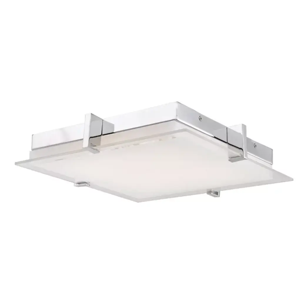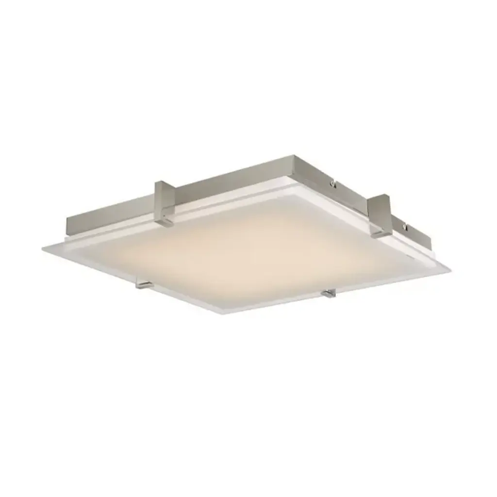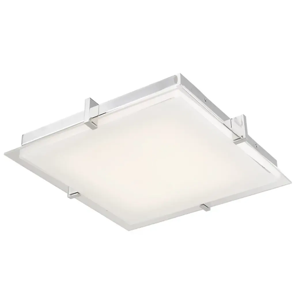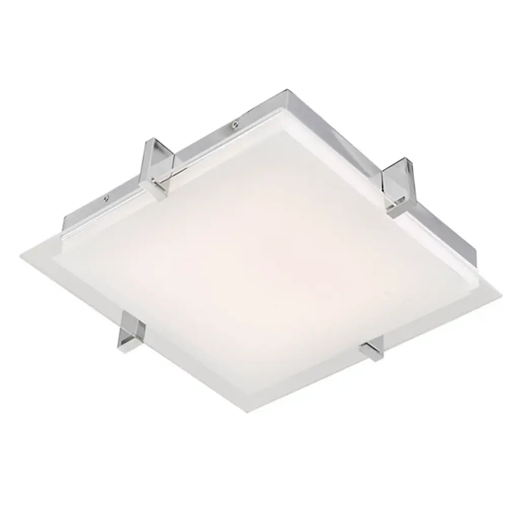 The Sara LED Flushmount from Huxe brightens up hallways with an aura of sophistication underlined by its fine geometric construction. A square steel canopy frames the piece with sleek, polished form. From it, jetting rectangular brackets organized on each side present stylish accenting underlining the overall symmetry. A frosted glass trim as well as a plate along the base translate brilliant LED light into an inviting and encompassing glow.