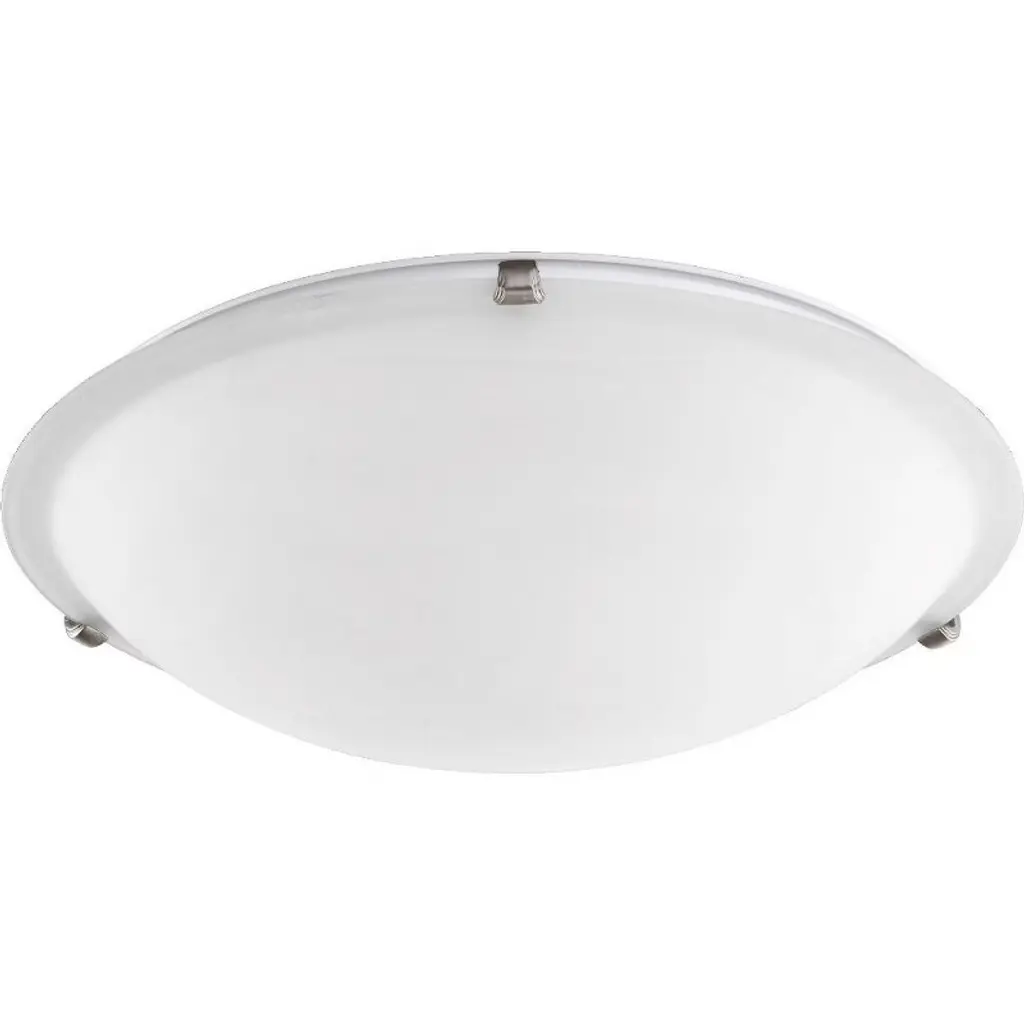 Simple and elegant, the Satin Opal ceiling mounts offer a straightforward design at a modest price. A shallow glass dome shade houses one 60-watt medium-base socket and is secured by a minimal matte black fastener. Choose from 12-inch, 16-inch, or 20-inch diameters.