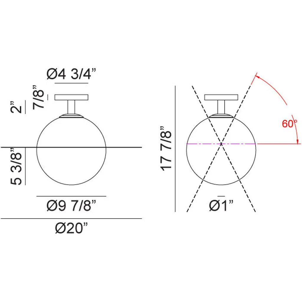 Saturn 1 Light 20 Inch Black And Opal Flush Mount Ceiling Light In Black And Opal Glass