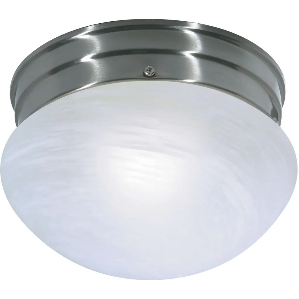 For use in a variety of spaces. Material: Metal, Finish Color: Satin Nickel, Width: 7", Height: 4.63", Length: 7", Hanging Method: Flush, Lamping Type: Incandescent, Number Of Bulbs: 1, Wattage: 60 Watts, Moisture Rating: Dry Rated