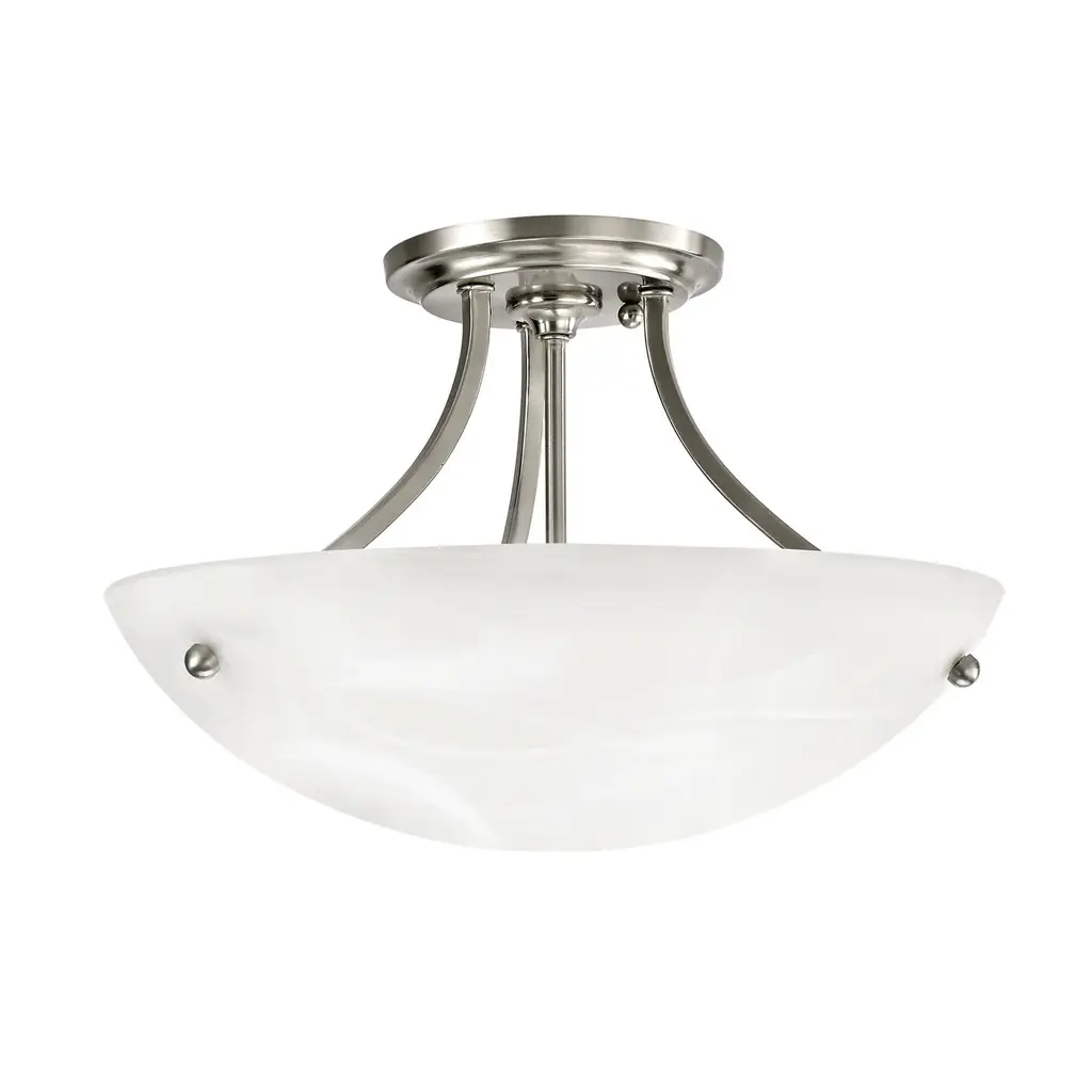 Use this versatile Savoy House 2-light ceiling flush mount to better illuminate any space. Its white etched glass shade ensures bright, comfortable light. satin nickel finish. Flush mounts can be used on the ceiling of pretty much any interior room, including foyers, hallways, stairways, closets, bathrooms, bedrooms, kitchens and more! Bulbs not included. The satin nickel finish can be paired with nickel hardware or mixed with hardware in other finishes. This is a terrific ceiling lighting option for any style of room. When you choose a Savoy House lighting fixture, you can be certain you've selected a piece that will withstand the test of time.