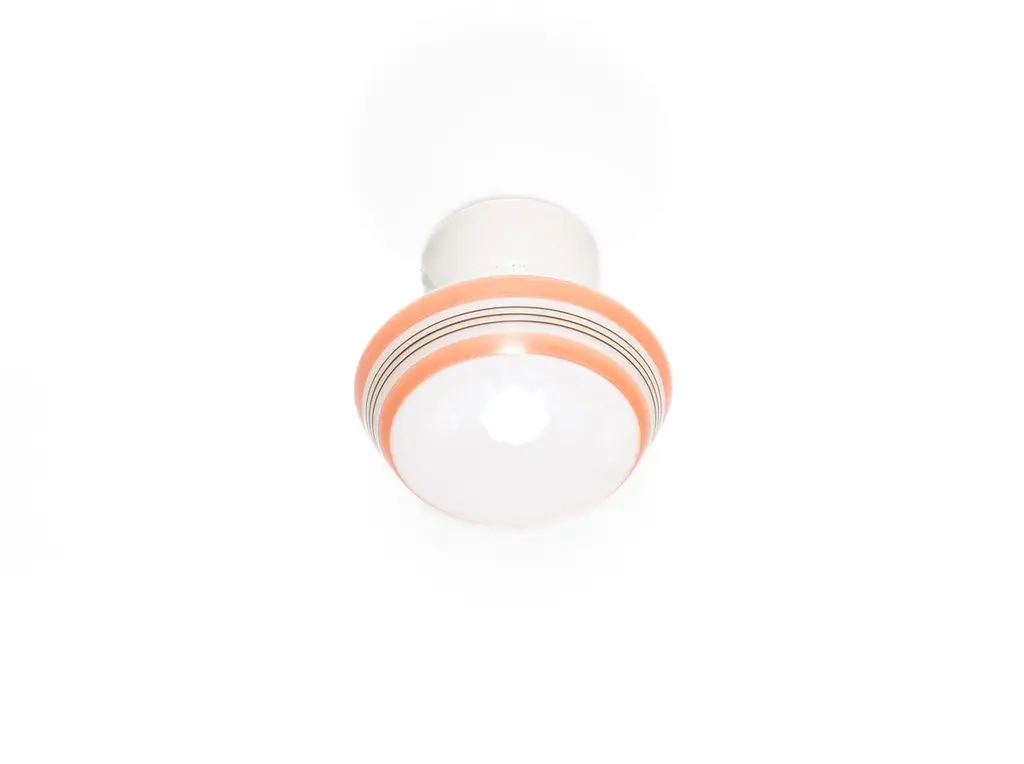 Decorative ceiling light with shade in hand-painted glass and base in porcelain. Designed and made in Norway from circa 1950s first half. The lamp is fully working and in very good vintage condition. The lamp uses a E27 bulb (works in the US), with a max wattage of 60.
