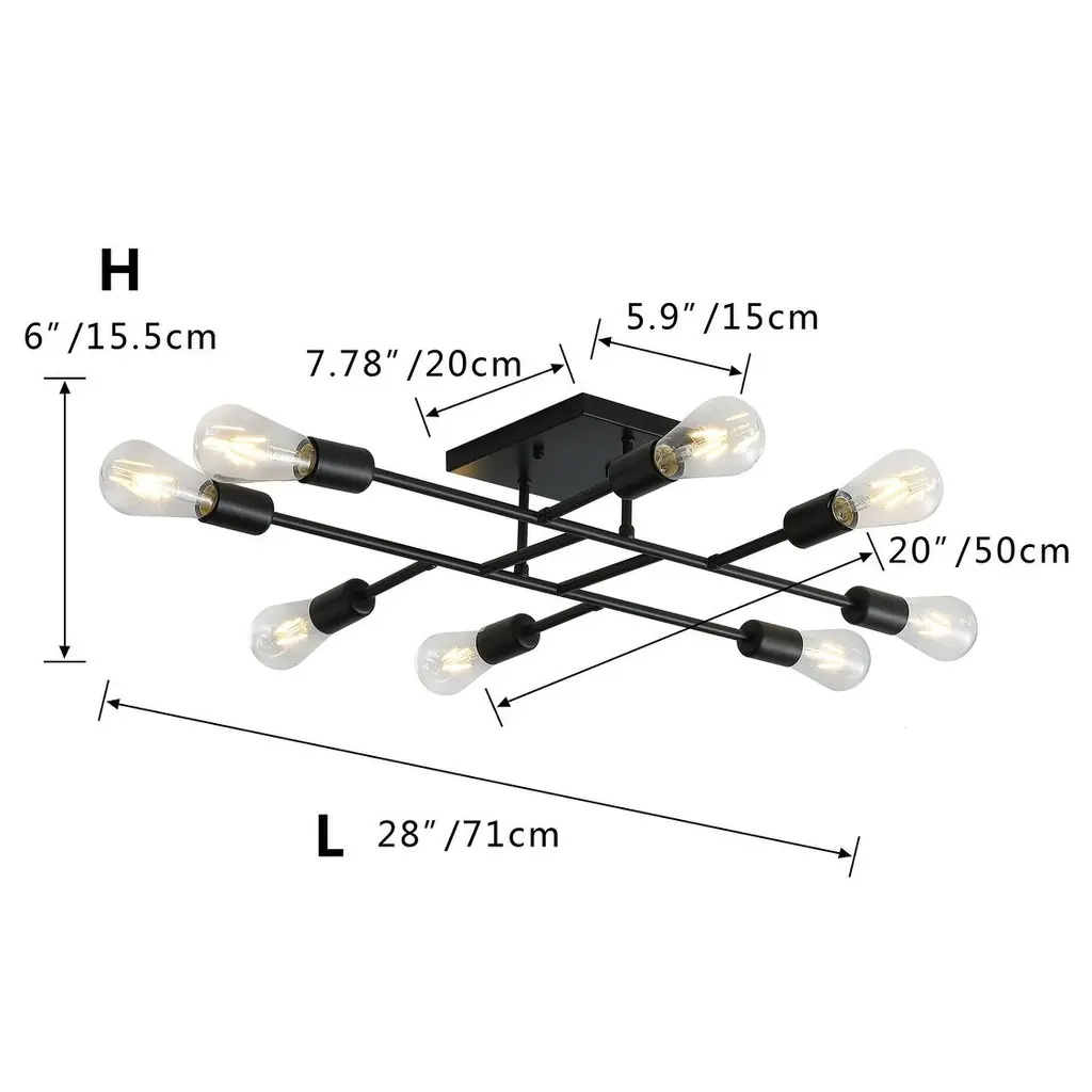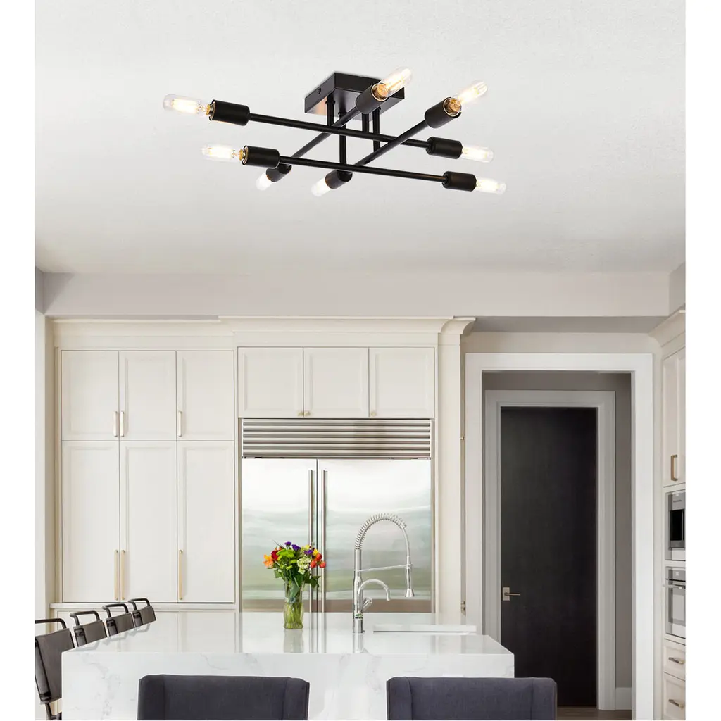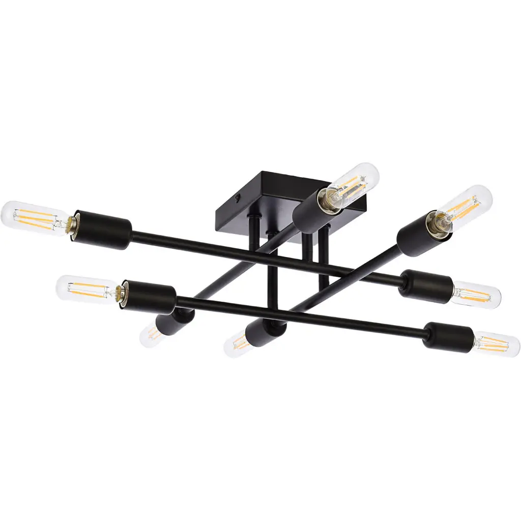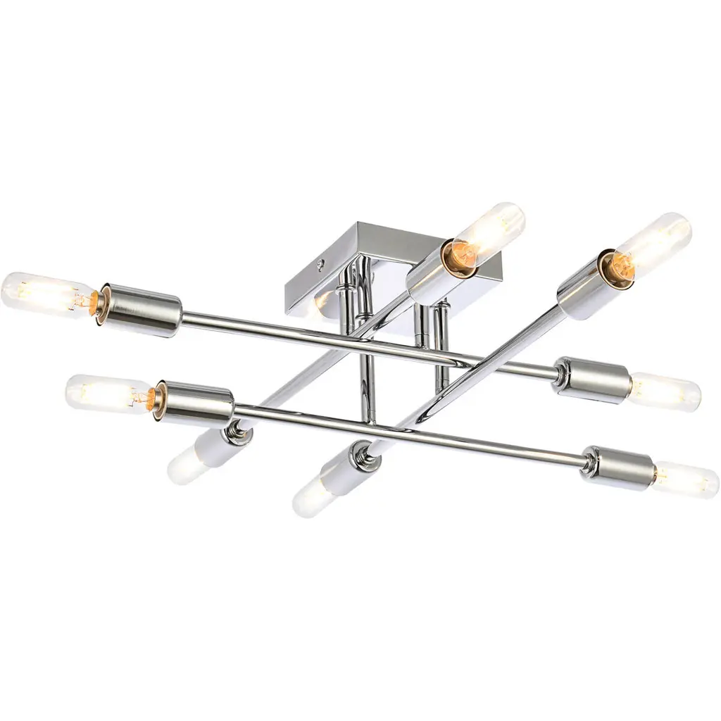 The Script collection flush mount light is an excellent piece to add to your space. The unique shape will stand out as it lights up the room. Available in a black, brass, or chrome finish this will add style to your living room, foyer, or kitchen.This product is dimmable and requires eight E12 lamps. Light bulbs not included.