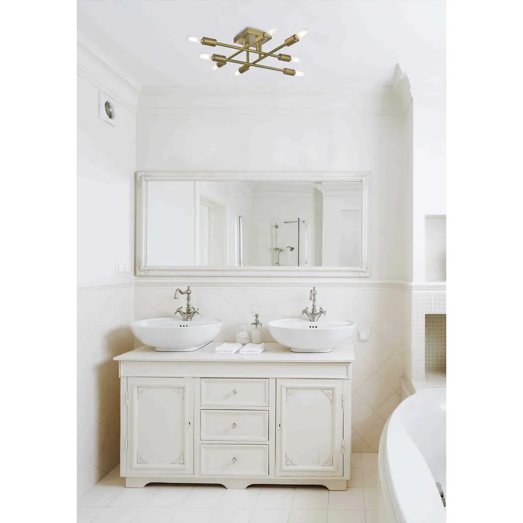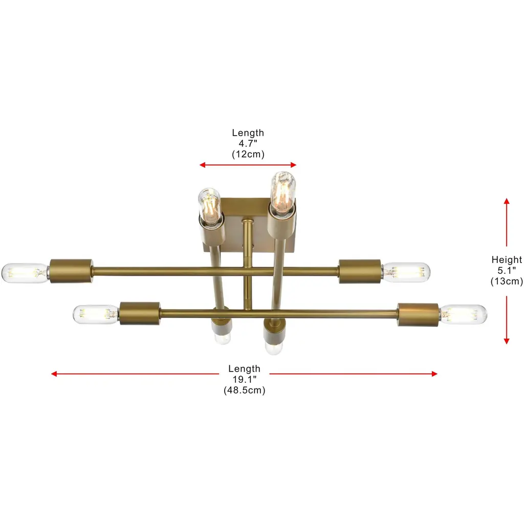 Script 8 Light 19 Inch Satin Gold Flush Mount Ceiling Light