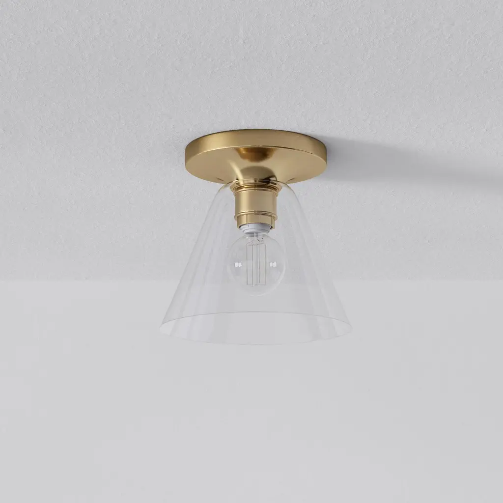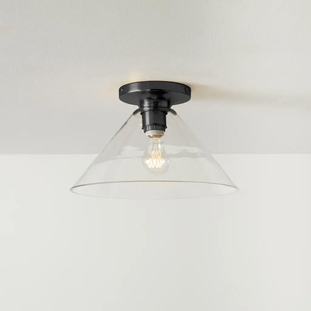 Create lighting with a custom feel with our Sculptural Glass Cone Flush Mount. Part of our biggest lighting collection yet, this flush mount's cone shade in glass gets a glowing review in any space.
