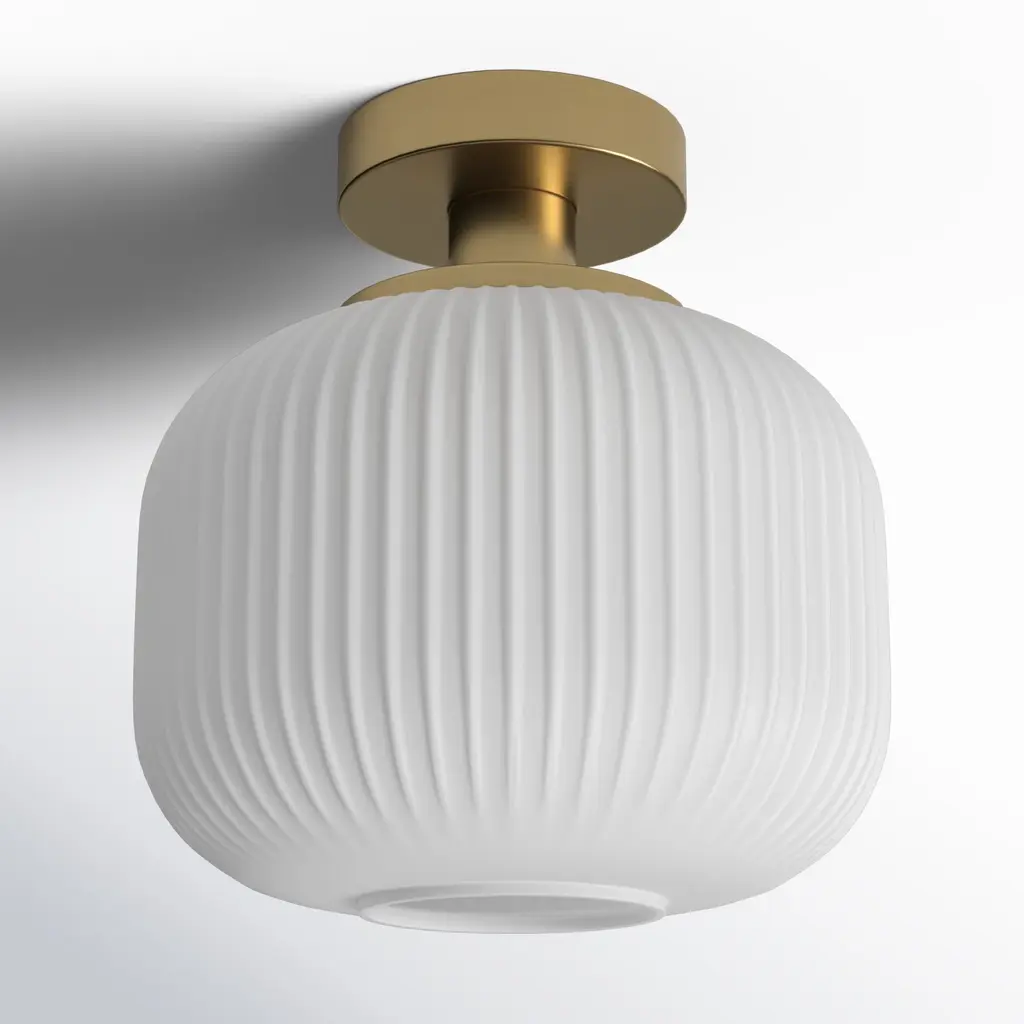 Create soft and stylish lighting with our Sculptural Glass Ribbed FlushMount. With its champagne-finished globe, it's just the thing to add illuminating intrigue to your hallway, entryway or the bathroom.