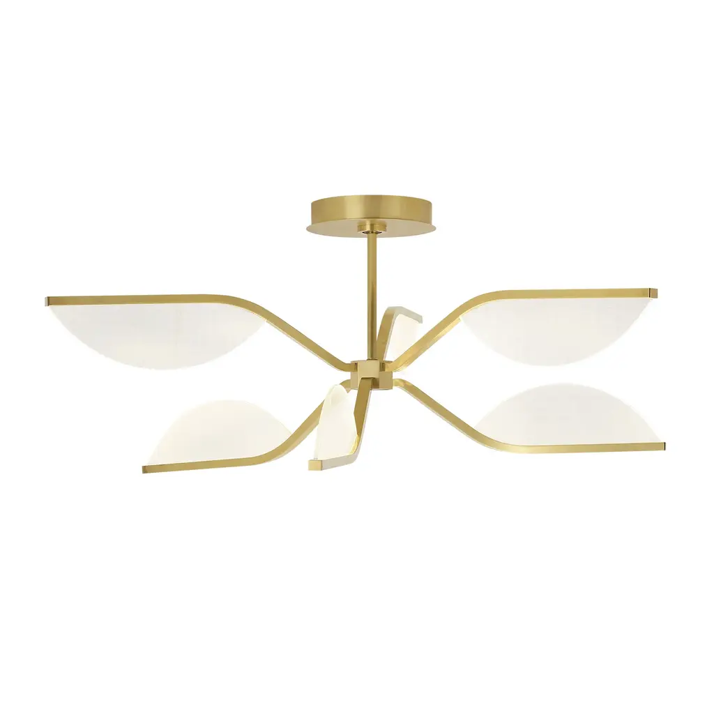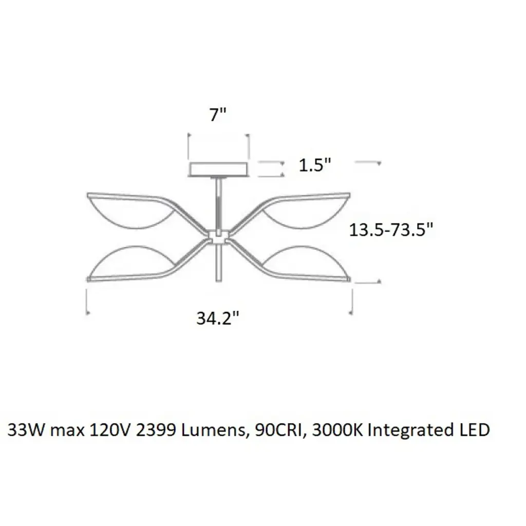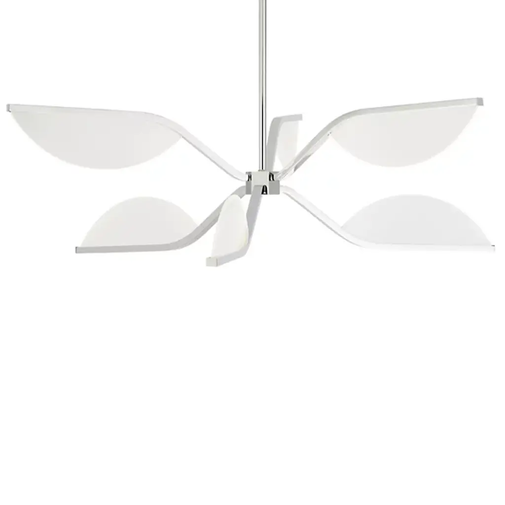 The Belterra 30 Flush Mount/Chandelier by Sean Lavin is inspired by the lotus flower. Petal-shaped LED light guide panels beautifully illuminate this contemporary design and capture the purity of the chandelier's graceful stem work. Designed with a minimal frame and offered in three elegant finishes, Belterra provides a touch of contrast when turned on and off. Ships with two 6” and four 12” stems providing flexibility to install close to the ceiling as a Flush Mount or hang lower from the ceiling as a Chandelier. The Belterra Family includes alternate fixture sizes to illuminate the space as a stand-alone piece or installed in multiples. Lamping options are compatible with most dimmers. Refer to the Dimming Chart for more information. Features