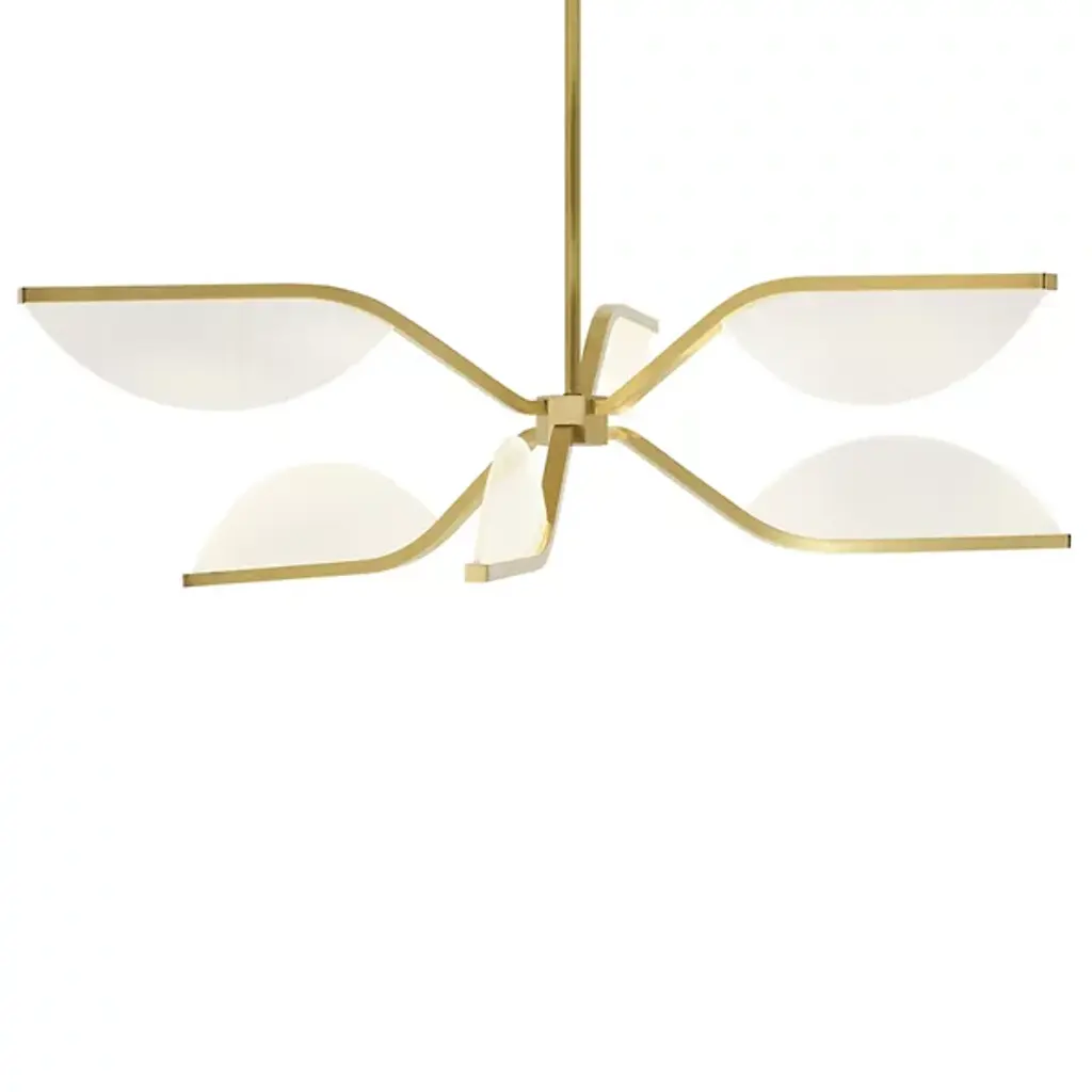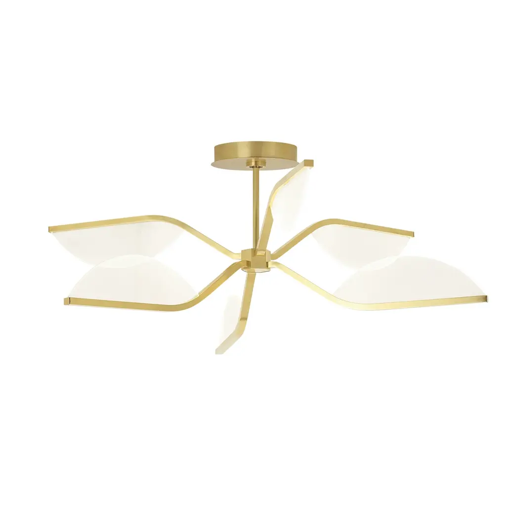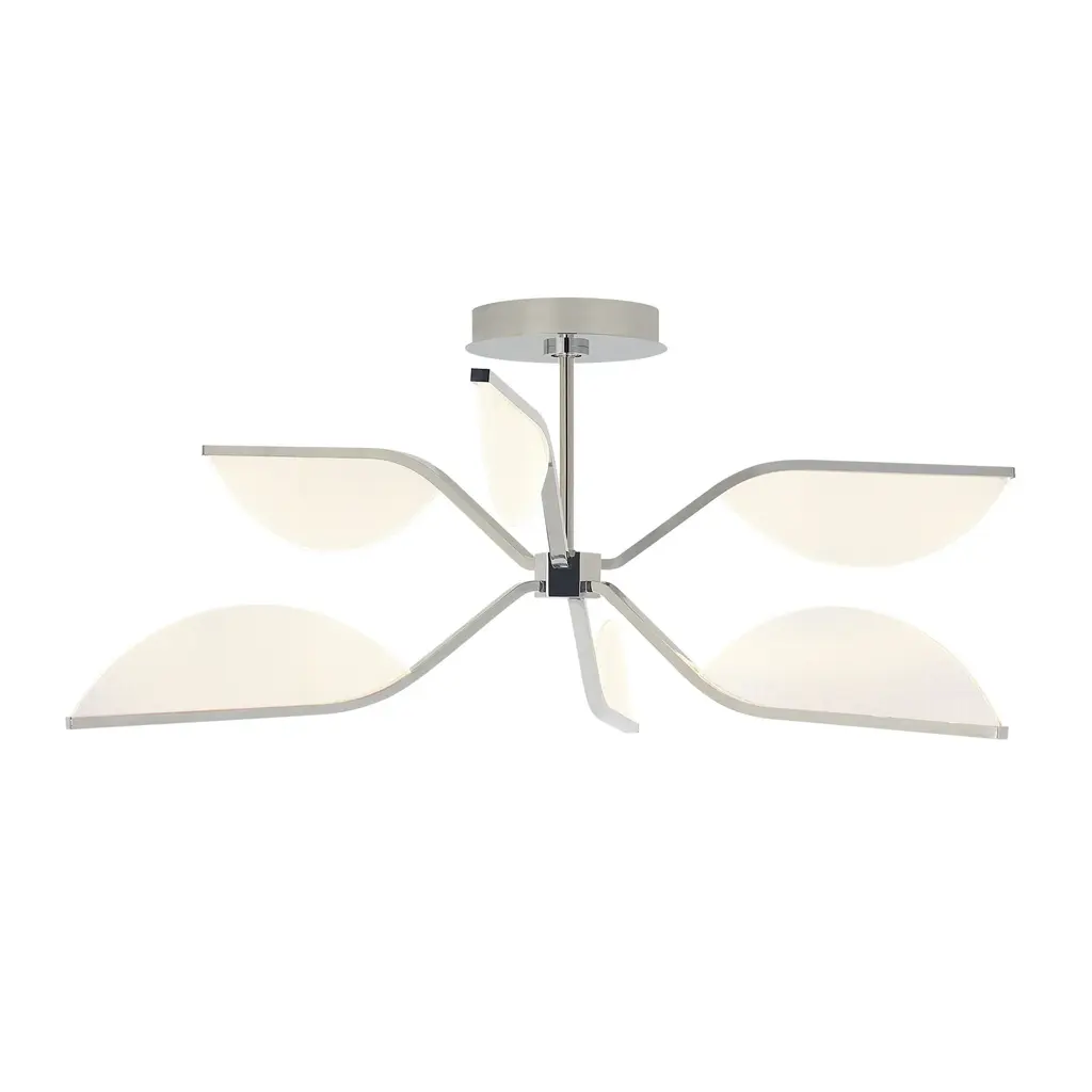 The Belterra 30 Flush Mount/Chandelier by Sean Lavin is inspired by the lotus flower. Petal-shaped LED light guide panels beautifully illuminate this contemporary design and capture the purity of the chandelier's graceful stem work. Designed with a minimal frame and offered in three elegant finishes, Belterra provides a touch of contrast when turned on and off. Ships with two 6” and four 12” stems providing flexibility to install close to the ceiling as a Flush Mount or hang lower from the ceiling as a Chandelier. The Belterra Family includes alternate fixture sizes to illuminate the space as a stand-alone piece or installed in multiples. Lamping options are compatible with most dimmers. Refer to the Dimming Chart for more information. Features
