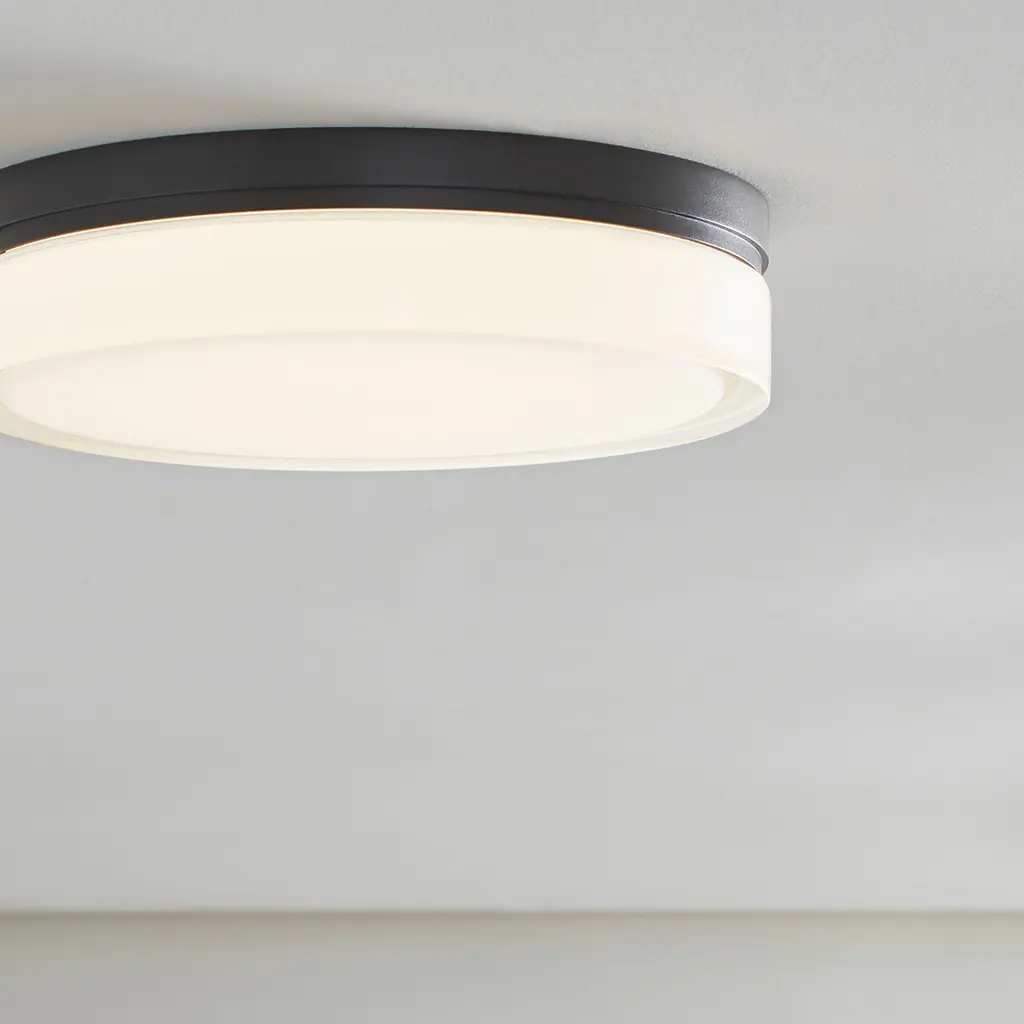 The Cirque ceiling fixture by Sean Lavin features a simple and clean design with its beautiful round pressed glass shade is and hand polished exterior. A metal base made of die-cast metal frames the glass giving this feature a very handsome look. Available in modern finishes. Your choice of LED lamping ships with Cirque saving you time and money. Lamping options are compatible with most dimmers. Refer to Dimming Chart for more information.