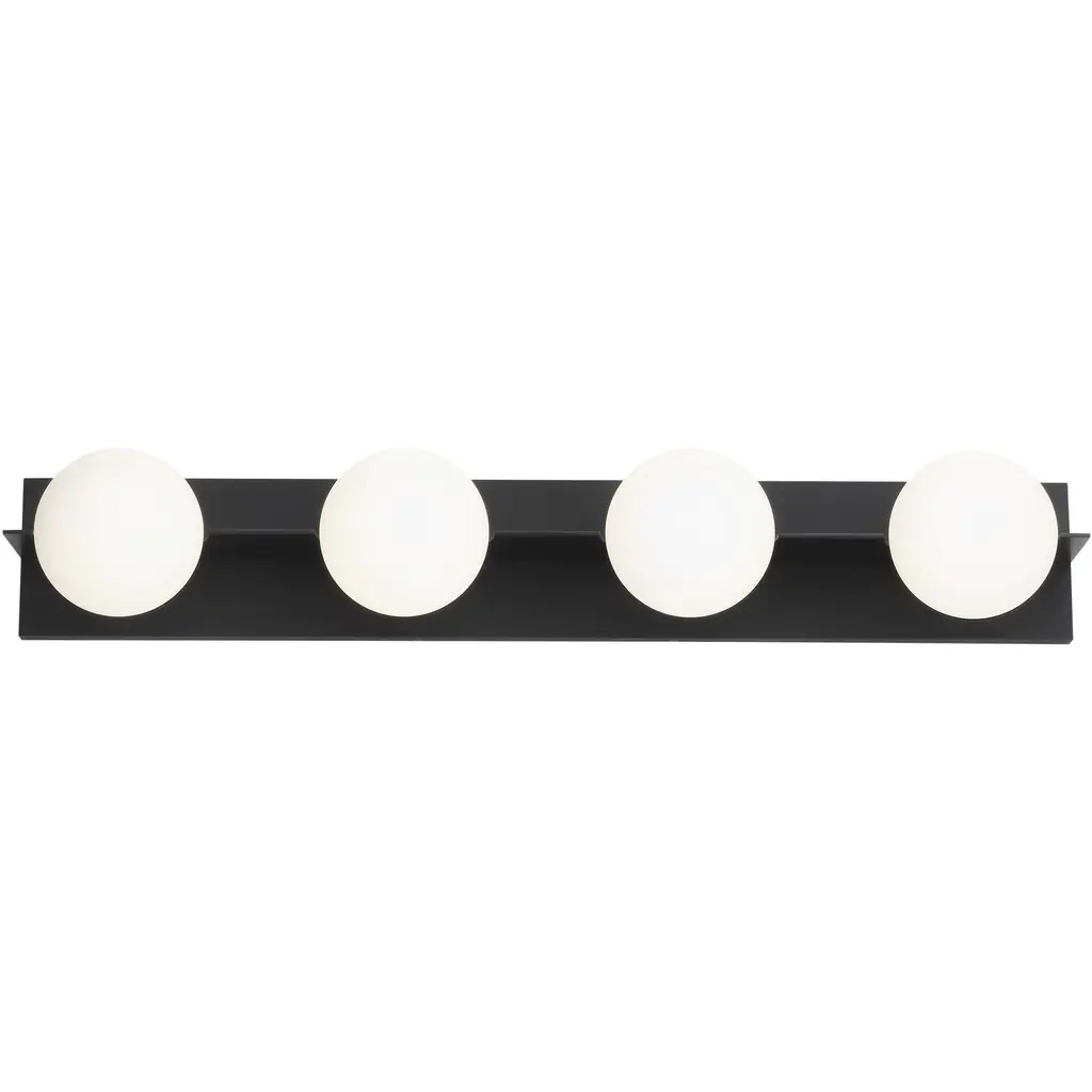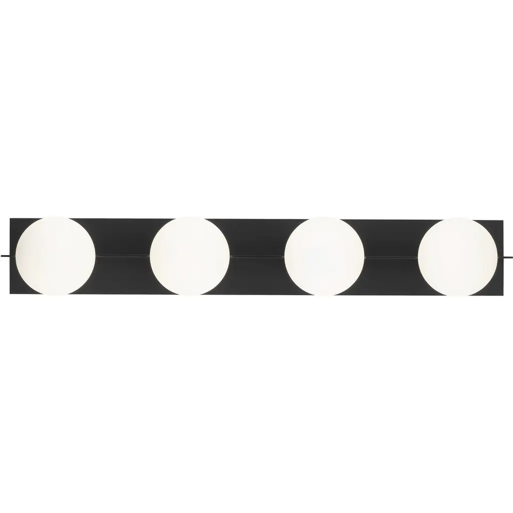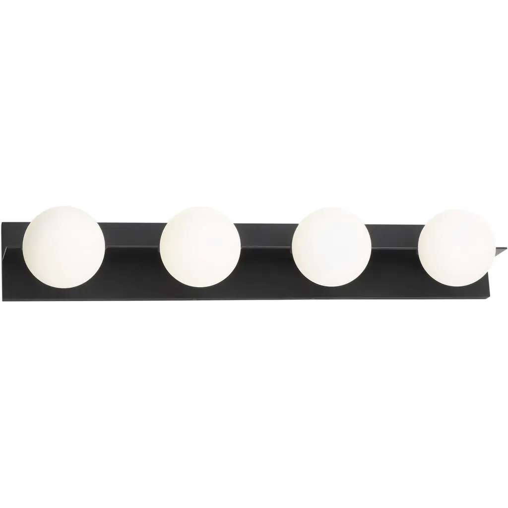 The Orbel Collection by Sean Lavin is inspired by Mid-Century modern art with contrasting geometric shapes. The Orbel 4-Light Bath Light fixture features four stacked frosted spheres supported by a rectangular metal base. Available in modern finishes. Coordinate your design with other fixtures in the Orbel Collection, the wall sconce, flush mount and low voltage pendants. Lamping options are compatible with most dimmers. Refer to the Dimming Chart for more information. No Lamp rated for (4) 5 watt max G9 bi-pin lamps (Not included). LED includes (4) 5 watt, 17.6 watts, 1484 total delivered lumens, 3000K LED G9 bi-pin lamps. Dimmable with most LED compatible ELV and TRIAC dimmers. Mounts horizontally or vertically.