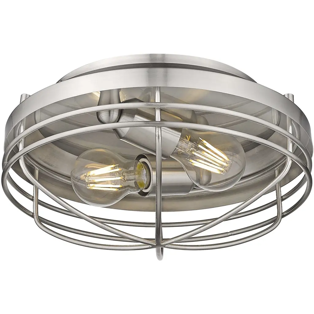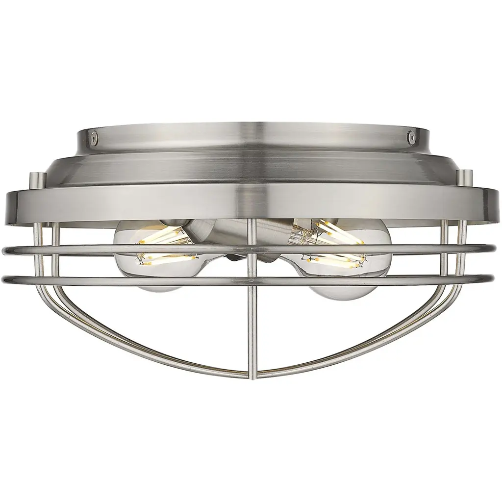 Seaport 2 Light 12 Inch Pewter Flush Mount Ceiling Light, Damp