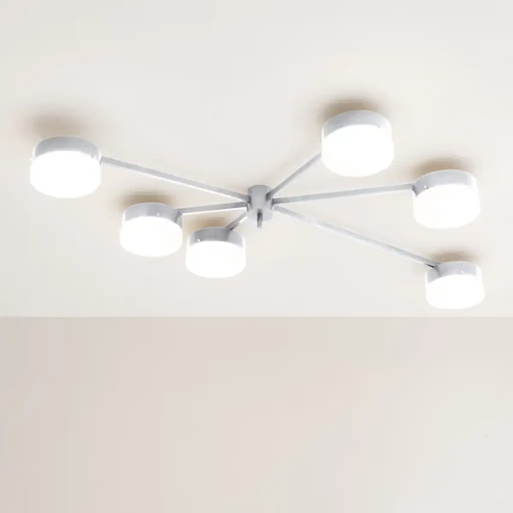 The Sei ceiling light is characterized by its star shaped frame with six suspended Murano glass shades. The first images show the fixture in our brunito nero (black bronze) finish-subsequent pictures show it in a selection of alternative finishes. Starting at $14,500 in standard finishes.Starting at $15,900 in premium finishes.Customization Options: Each fixture is hand crafted in Italy and can be customized in size, layout and number of shades. Available in any of our 10 finishes and 8 enamel colors. Compatible with our Murano bubble glass and Murano frosted glass. Can be installed as a flush mount or on a stem.Lead Time: 10-12 weeks plus shipping. May be available for quick ship in 6 weeks or under.Diameter: 52”Height: 8”. Overall height can be adjusted as needed. Electrical: Twelve E12 40W incandescent or 75W LED equivalent Model#: LTZ402/B