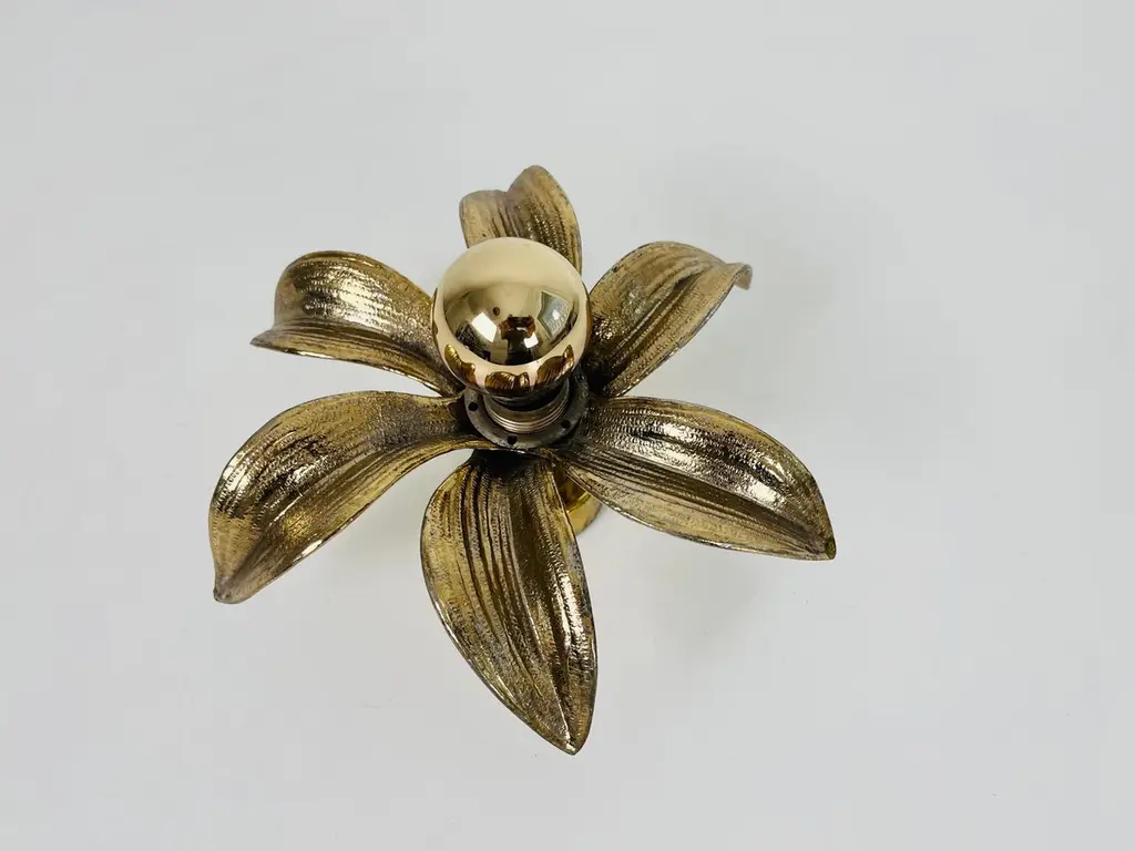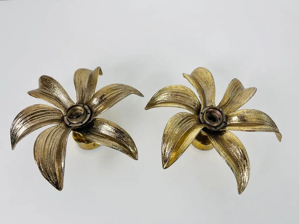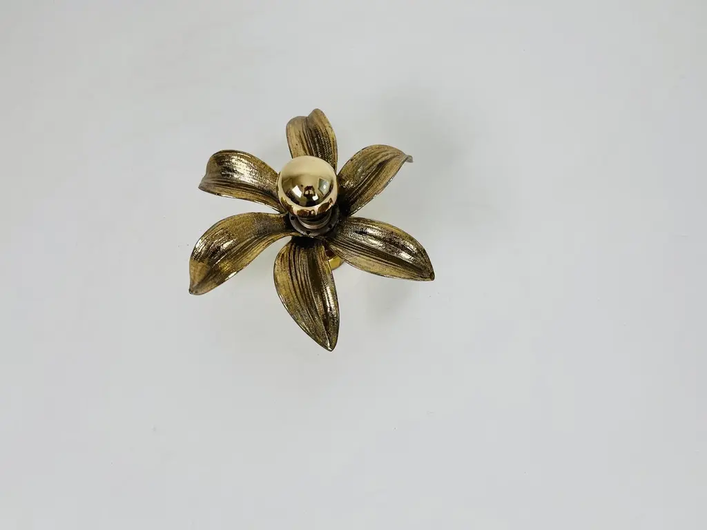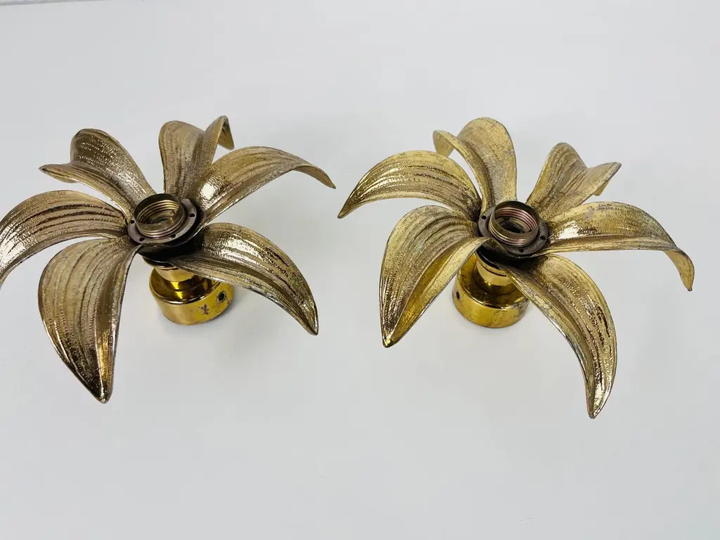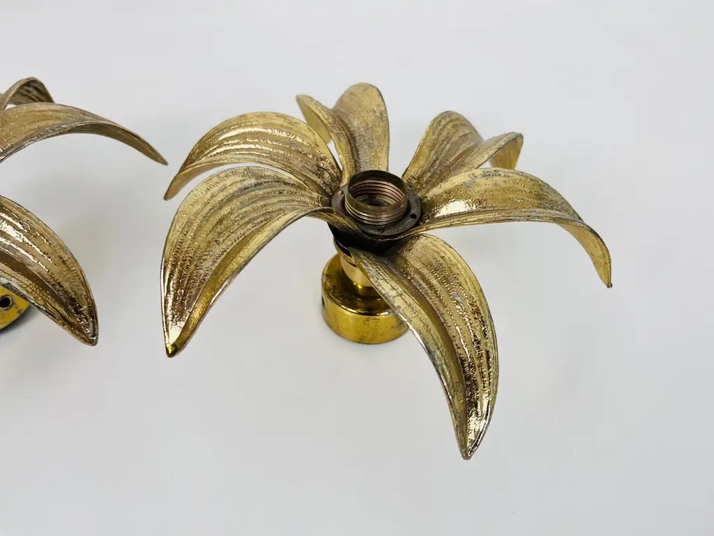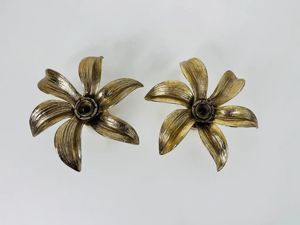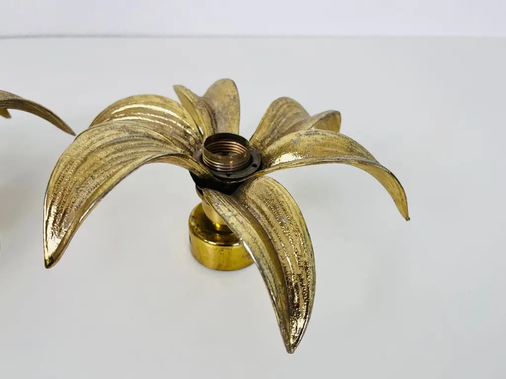 Set Of 2 Golden Florentine Flower Shape Flushmounts By Willy Daro For Massive