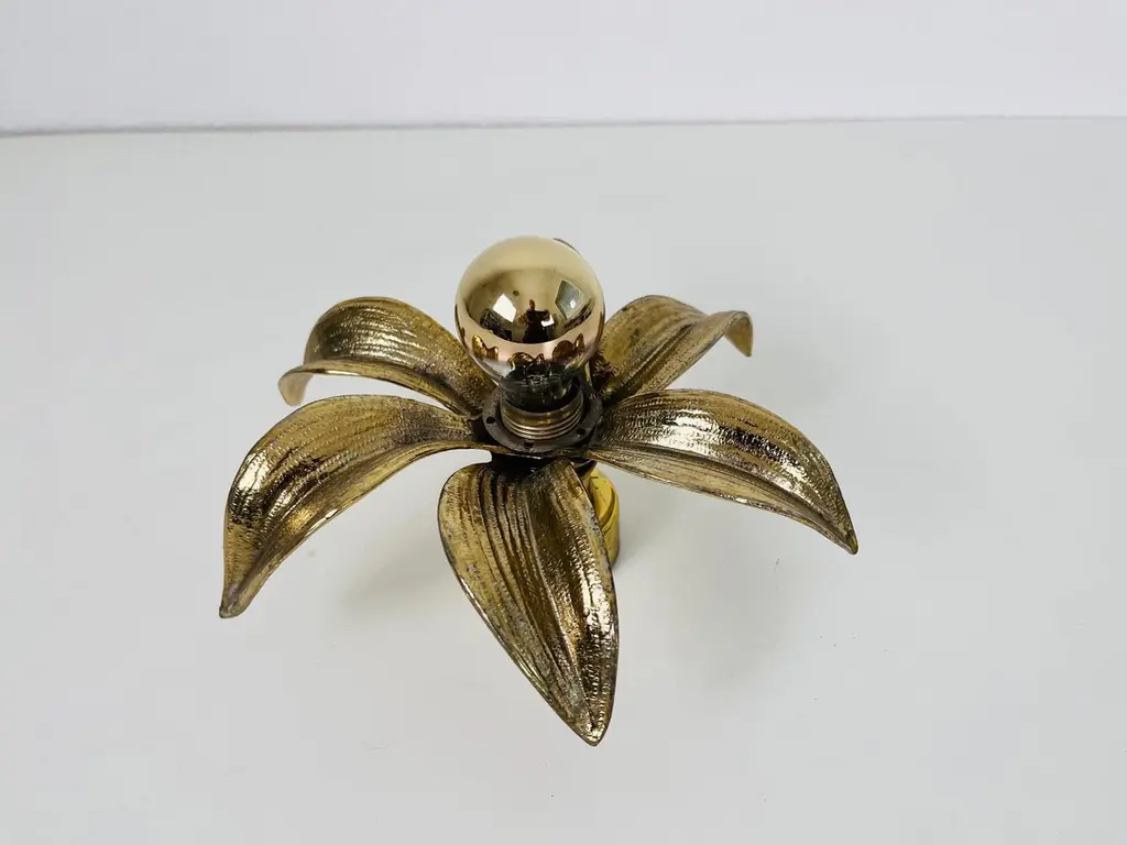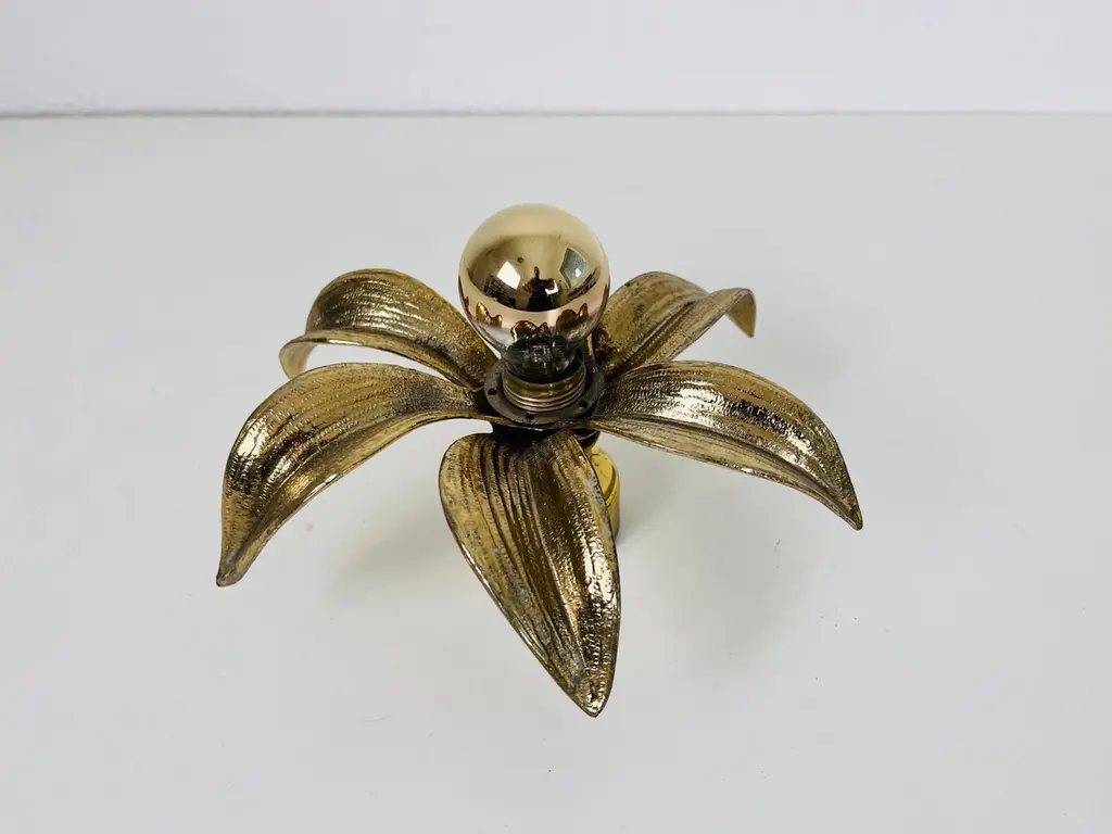 A set of brass flushmounts by Willy Daro for Massive made in Belgium in the 1960s. The lamp has a beautiful wheat sheaf design. It is made in the period of Hollywood Regency. The light requires an E14 light bulb. Works with both 120/220V. Very good vintage condition.Free worldwide express shipping.