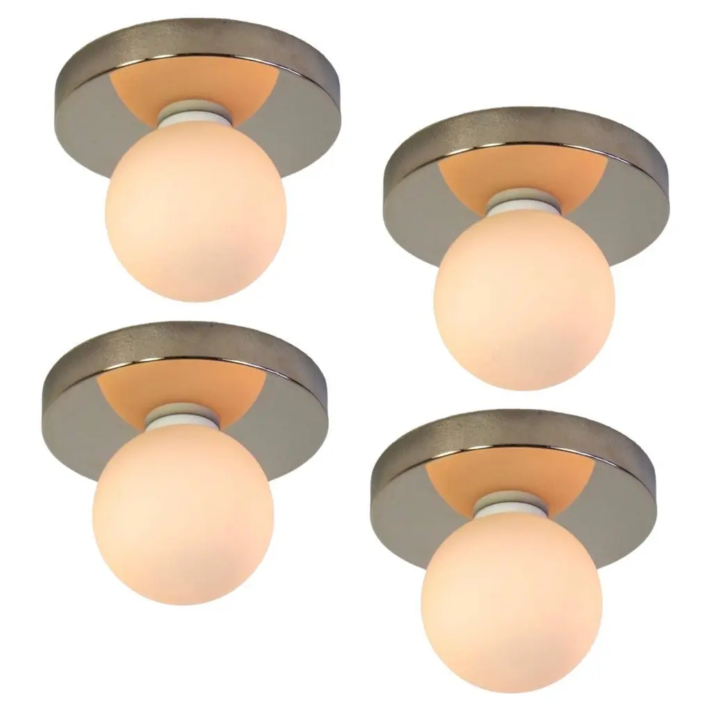 Set Of 4 Globe Flush Mounts, Research.lighting, Copper, 3In Glass, Made To Order