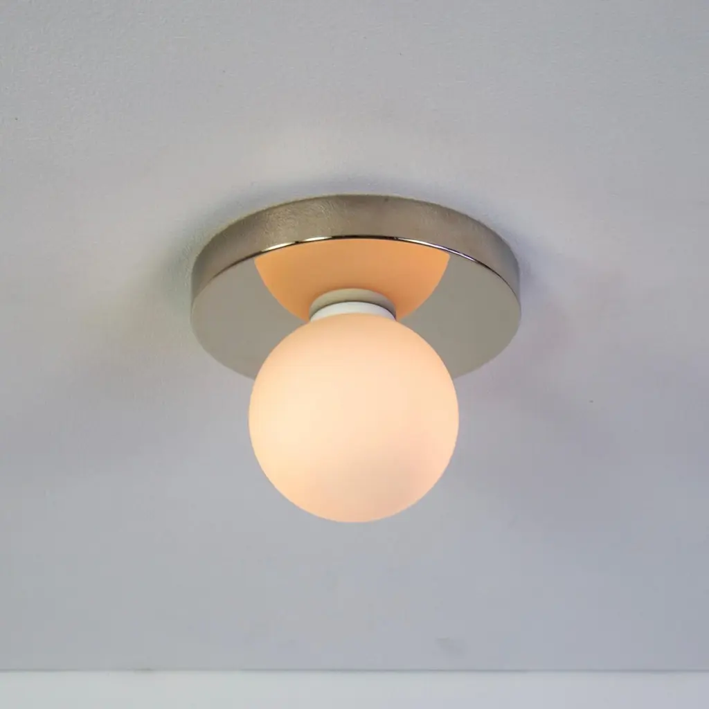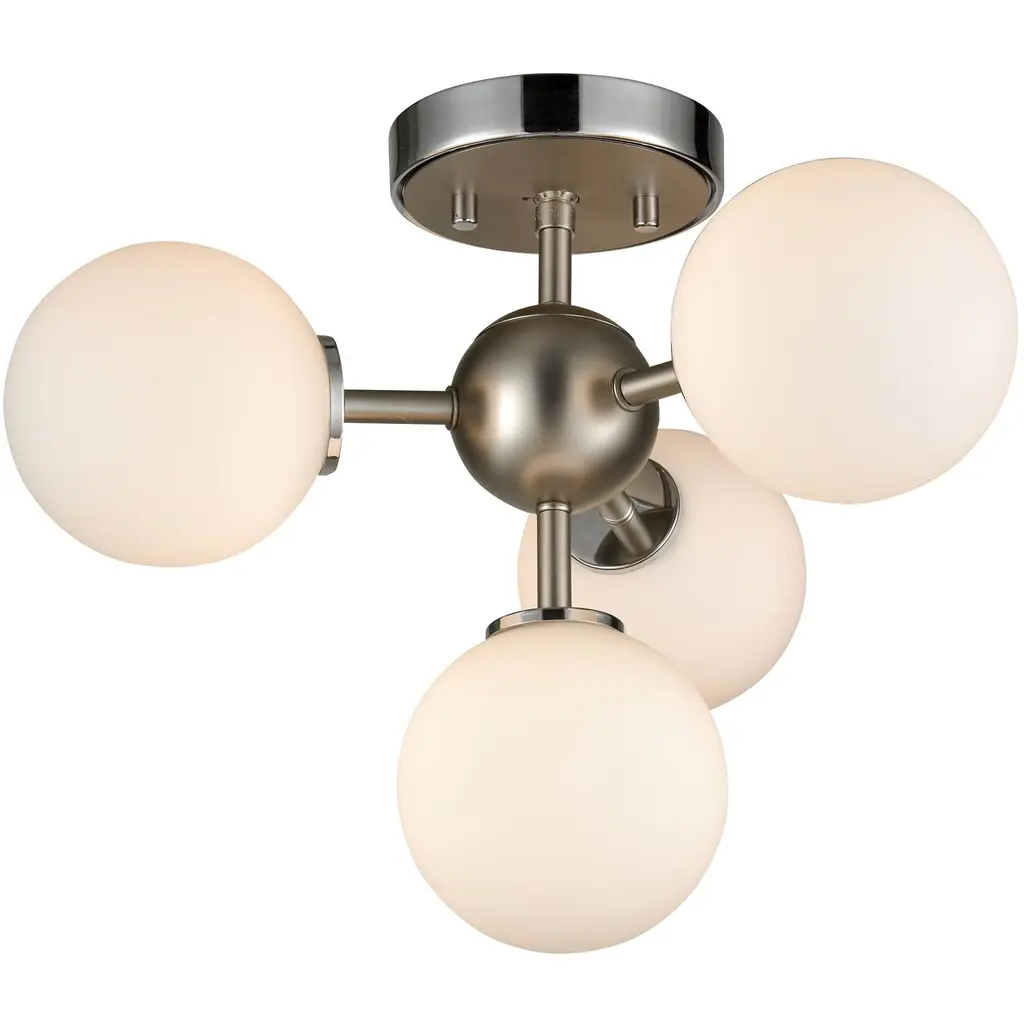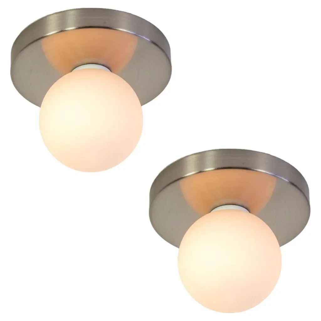 Set Of 4 Globe Flush Mounts, Research.lighting, Polished Nickel, 3In Glass, Mto