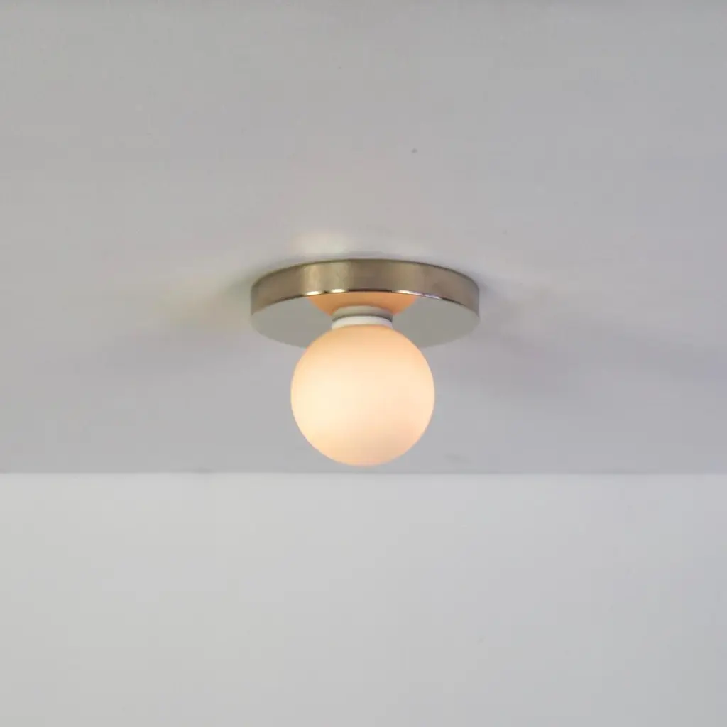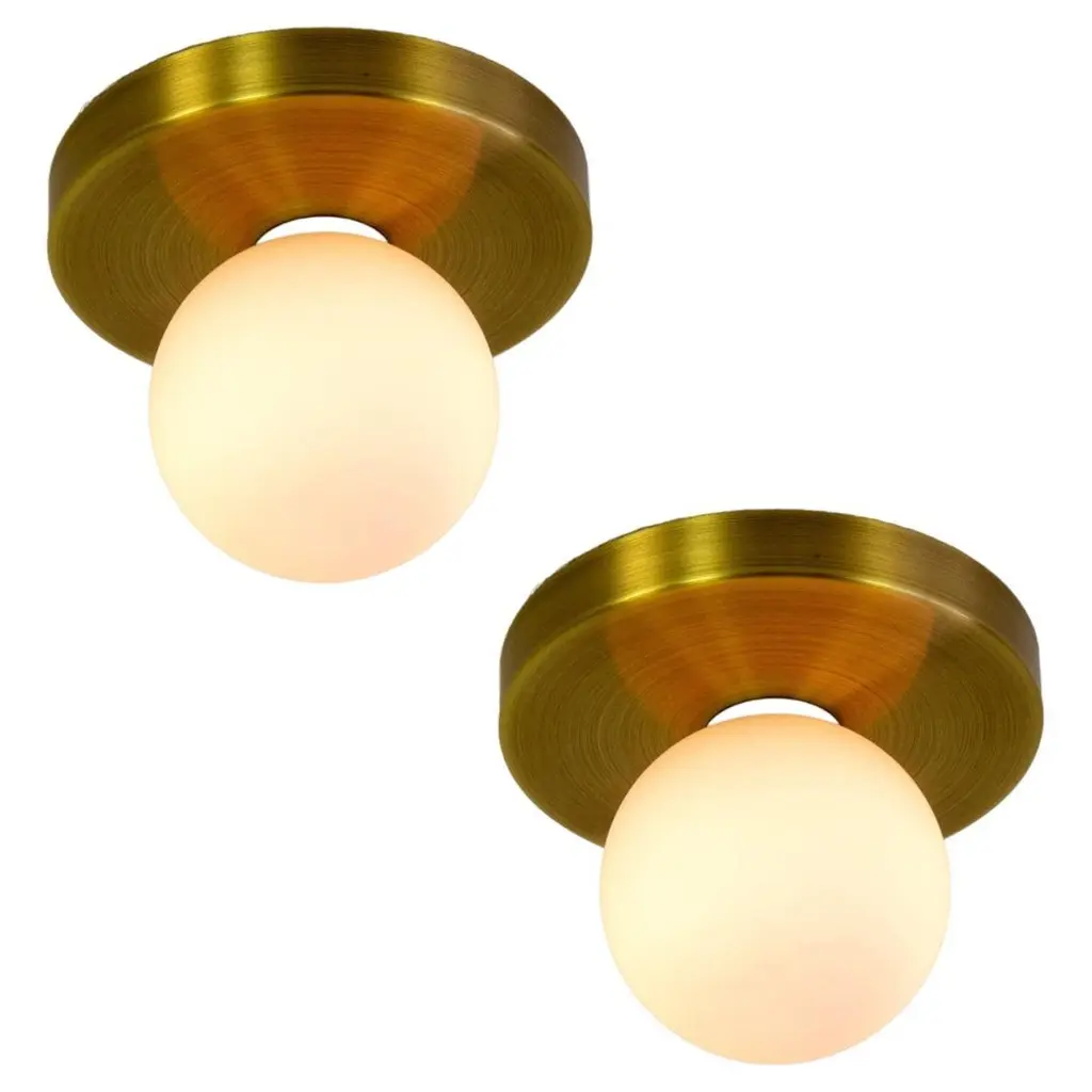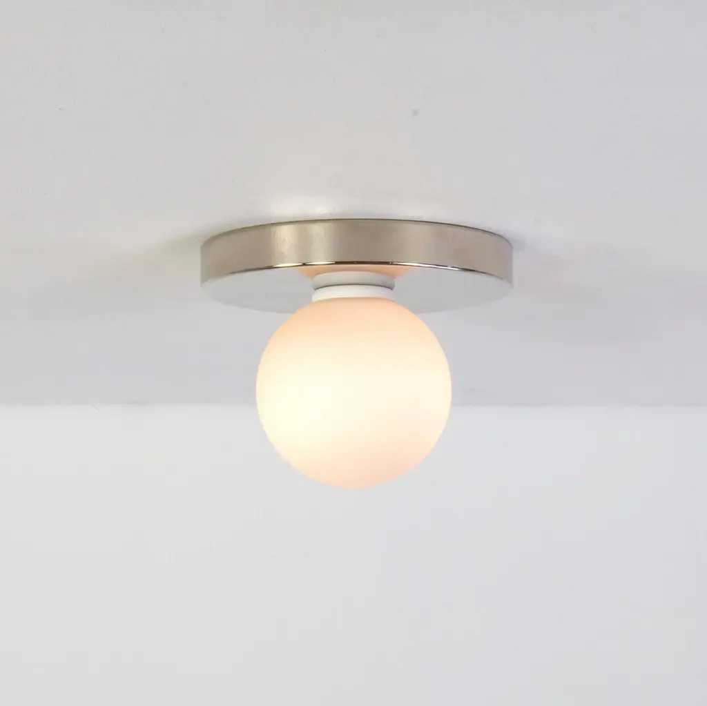 Set Of 4 Globe Flush Mounts, Research.lighting, Polished Nickel, 3In Glass, Mto