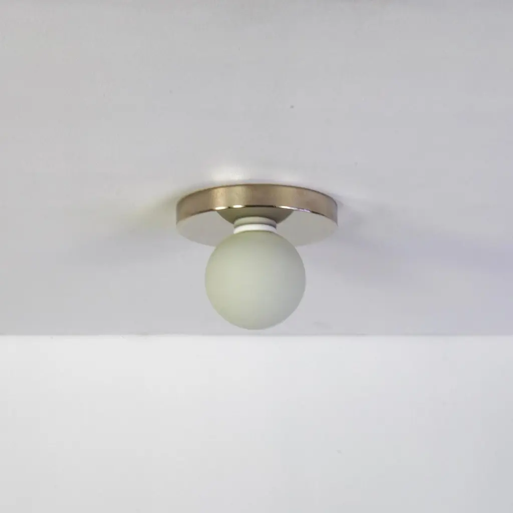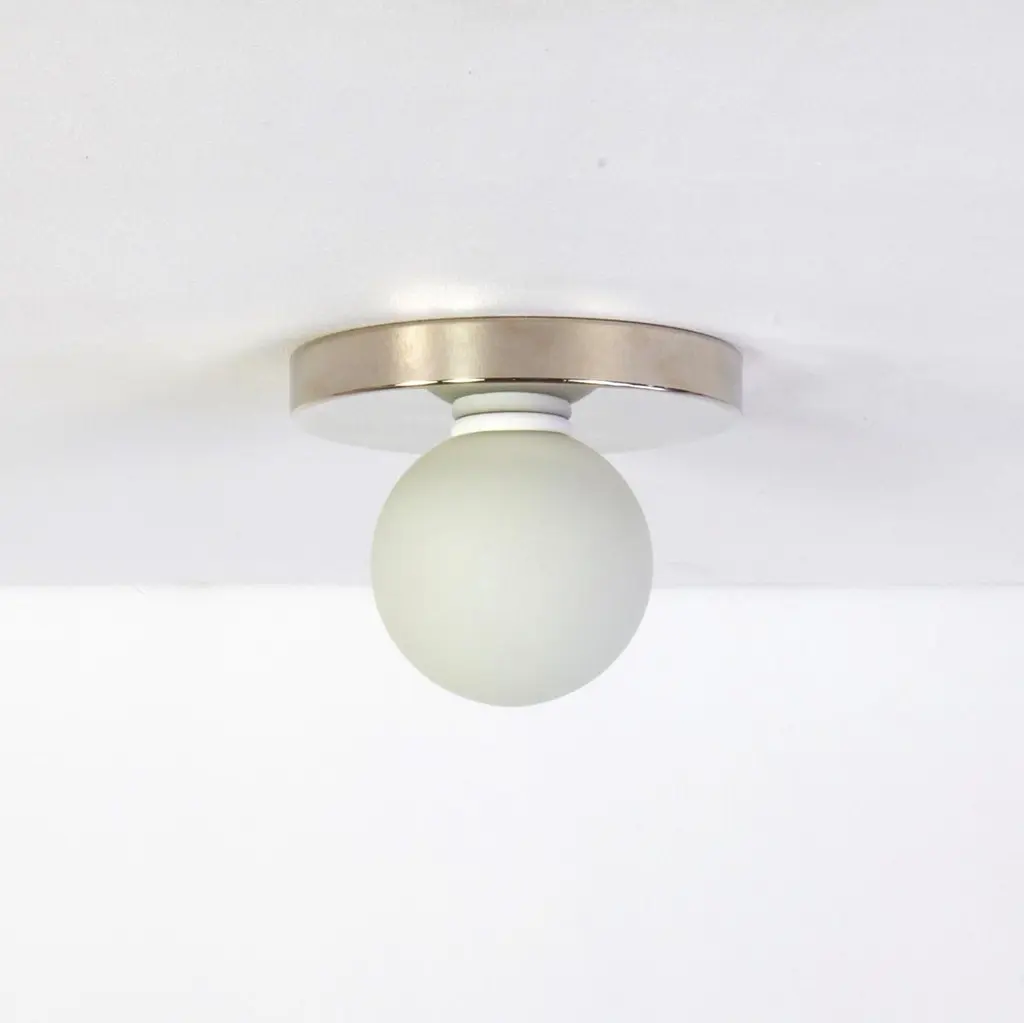 This listing is for 4x Globe Flush Mounts in polished nickel designed and manufactured by Research.Lighting.Materials: Brass, Steel & GlassFinish: Polished NickelElectronics: 1x G9 Socket, 1x 4.5 Watt LED Bulb (included), 450 LumensADA Compliant. UL Listed. Made in the USA.