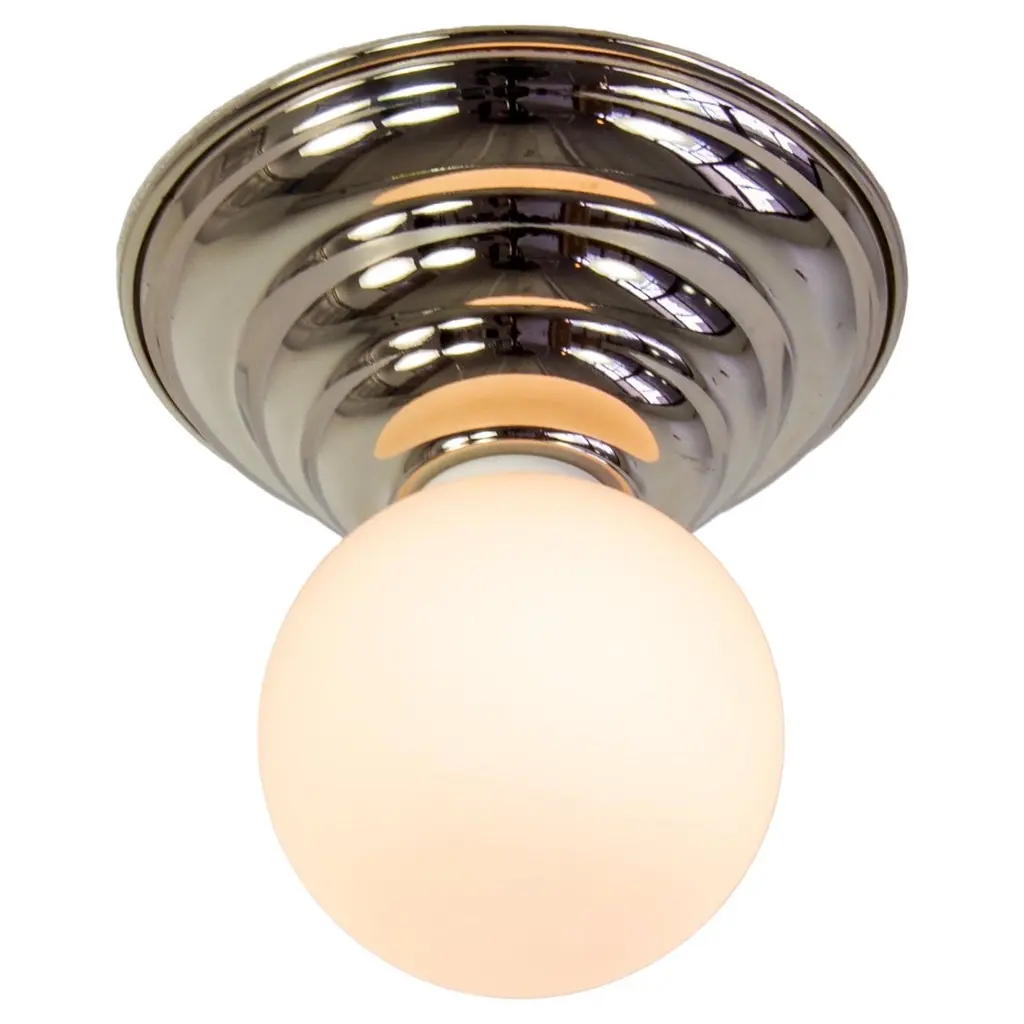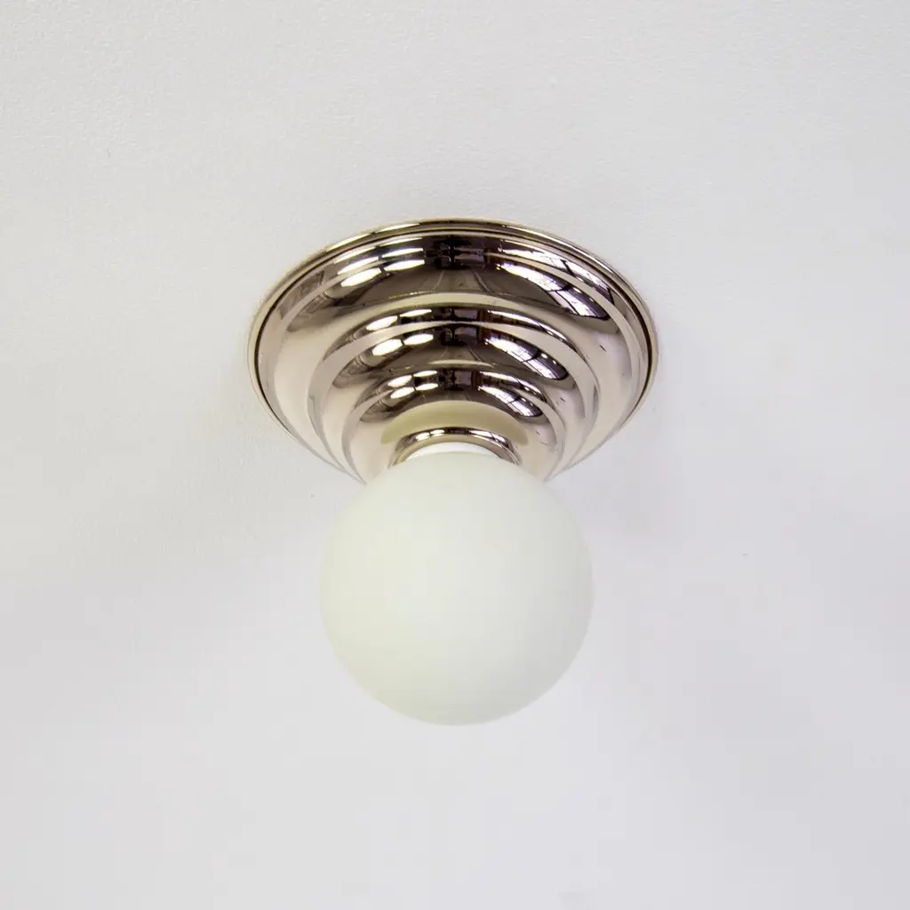This listing is for 4x Hive Flush Mounts in polished nickel designed and manufactured by Research.Lighting.Materials: Brass, Steel & GlassFinish: Polished NickelElectronics: 1x G9 Socket, 1x 4.5 Watt LED Bulb (included), 450 LumensADA Compliant. UL Listed. Made in the USA.