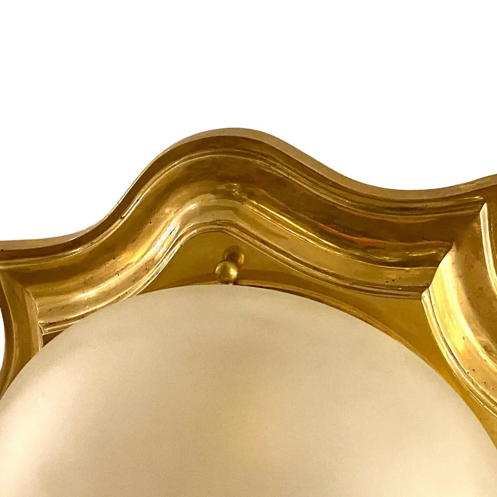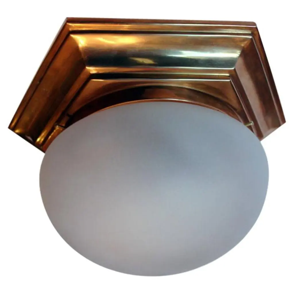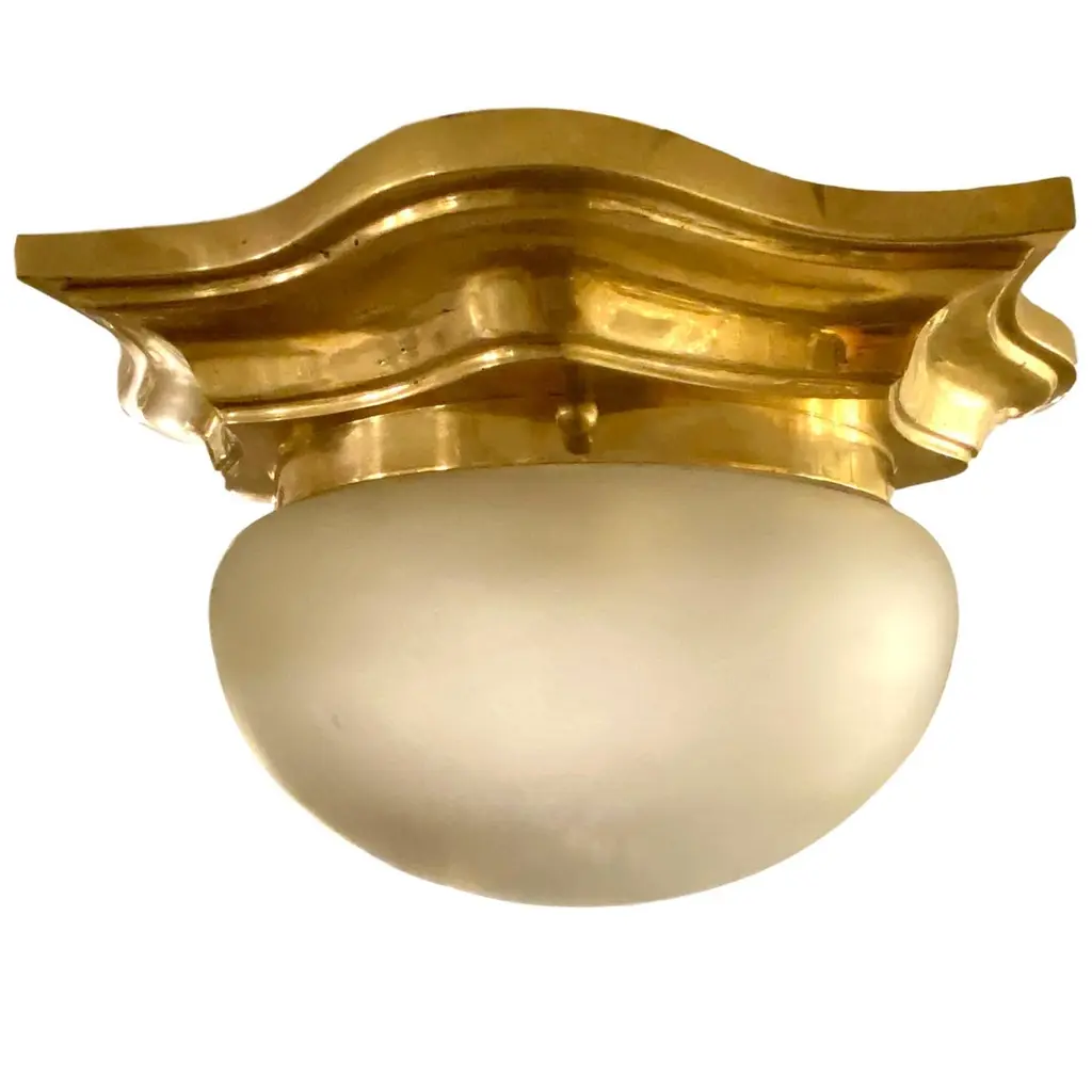 A set of thirteen circa 1940s Italian neoclassic-style cast bronze flush-mounted light fixtures with frosted glass inset and single interior light. Sold individually.Measurements:Diameter 13"Drop 6".